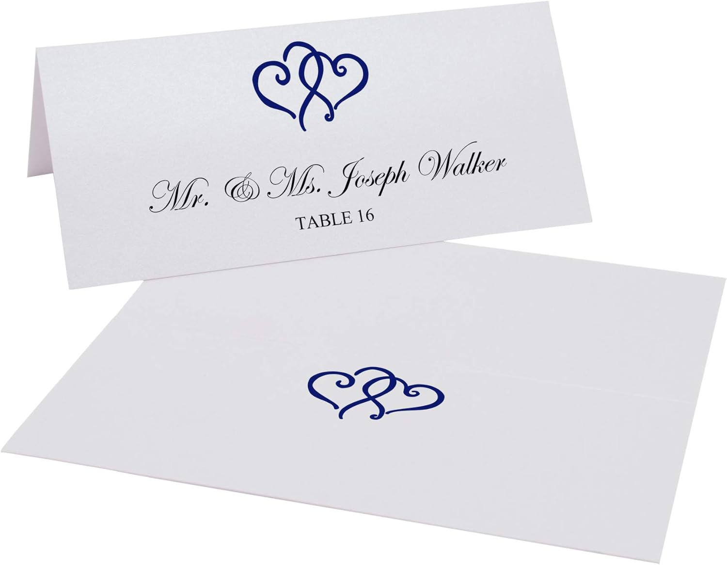 Linked Hearts Place Cards, Navy (Choose Color), Set of 60, Pre-cut and Scored - Wedding, Party, Dinner, and Special Events - Made in the USA