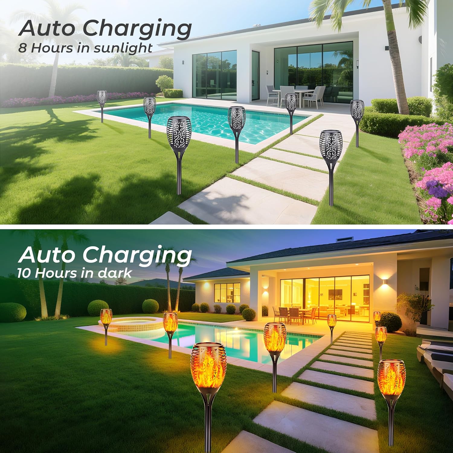 - π₯ Long Working Time β Up to 12 Hours: Equipped with upgraded monocrystalline solar panels and a high-capacity rechargeable battery, each torch operates for up to 12 hours after a full charge. Ideal for garden parties, camping, barbecues, weddings, and seasonal dΓ©cor, also a stylish decorative choice for holiday gifting.