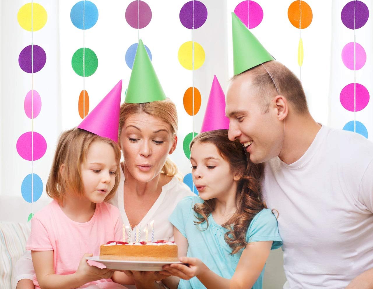 MerryNine Paper Garland 5 Pack, 65 Ft Glitter Paper Garland Circle Dots Hanging Decor, Banner for Baby Shower, Birthday, Nursery Party Decor (Colorful)