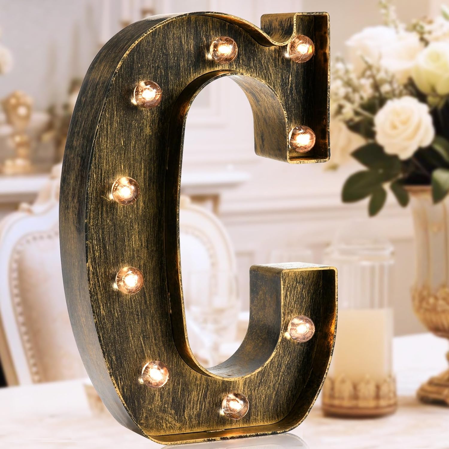 OYCBUZO Golden Black Led Marquee Letter - Industrial, Vintage Style Light Up Alphabet Letter Sign for Cafe Wedding Birthday Party Christmas Lamp Home Bar Initials Decor - C