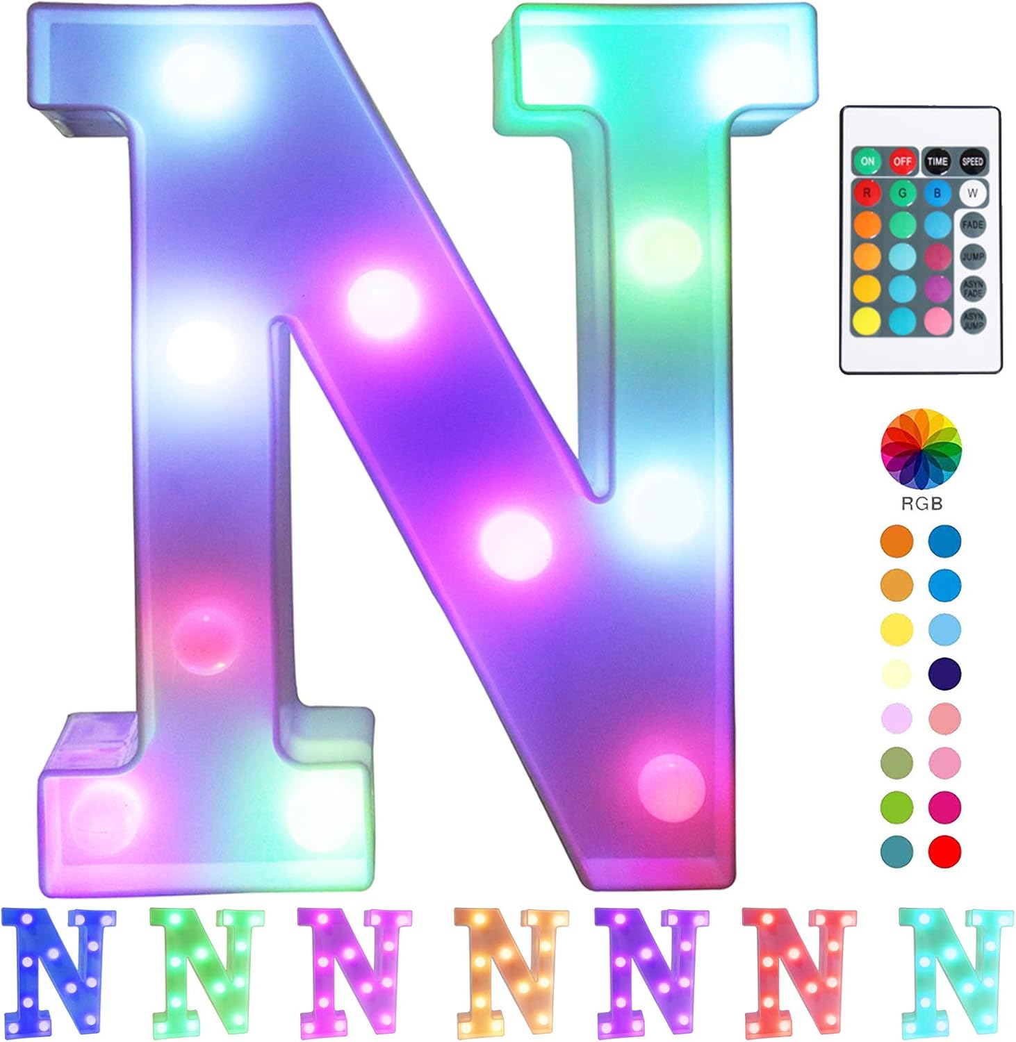 Pooqla Colorful LED Marquee Letter Lights with Remote – Light Up Marquee Signs – Party Bar Letters with Lights Decorations for The Home - Multicolor N