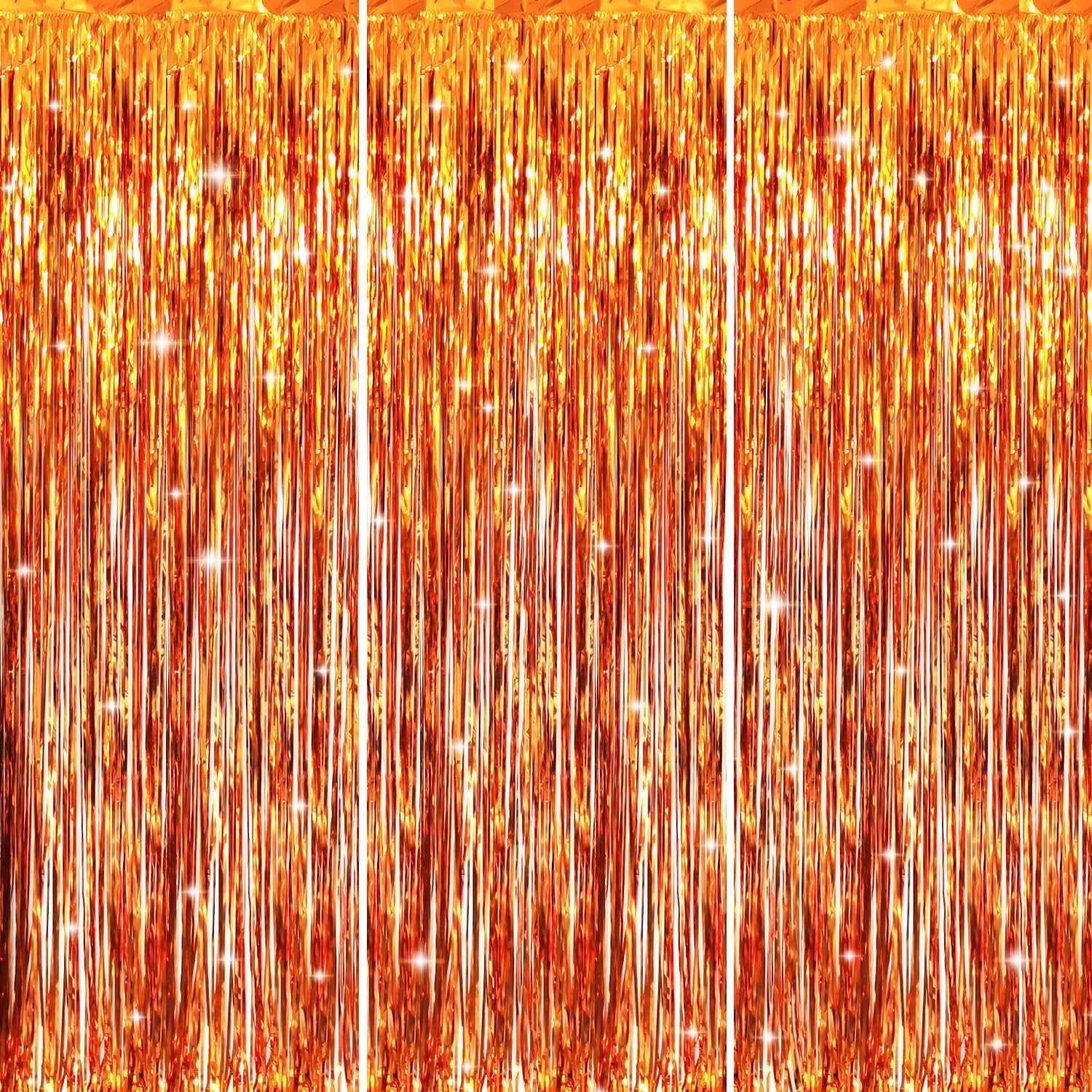 - Package Includes:3 pack orange foil fringe curtains,3.2 ft x 8.2 ft each,suitable for hanging on a door or coverage a wall fully