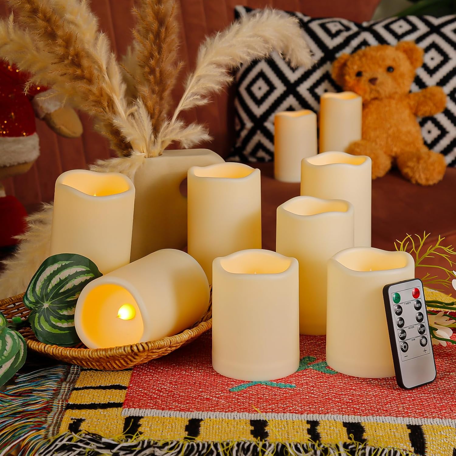 - Realistic Flameless LED Candles - This set of 9 large LED candles features a lifelike flickering effect, It looks like a real candle. Light up your fireplace with flameless candles and enjoy the warmth and romance of home