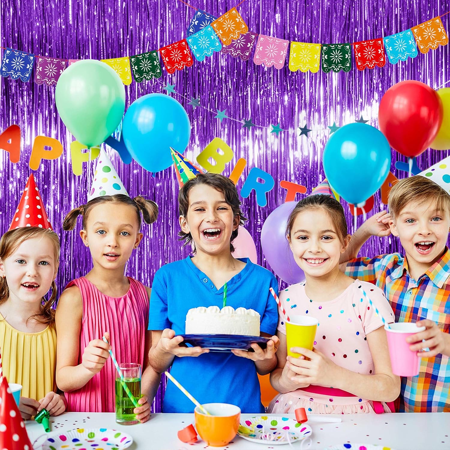 BTSD-home Purple Foil Fringe Curtain, Metallic Photo Booth Backdrop Tinsel Door Curtains for Wedding Birthday Bridal Shower Baby Shower Bachelorette Christmas Party Decorations(4 Pack, 8ft x 3ft)