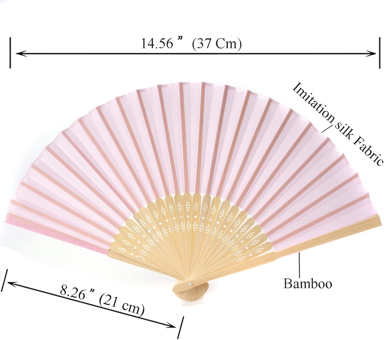 24pcs Imitated Silk Hand Fan Imitated Silk Fabric Bamboo Handheld Folded Fan Bridal Dancing Props Church Wedding Party Favors with Organza Bags (Pink)