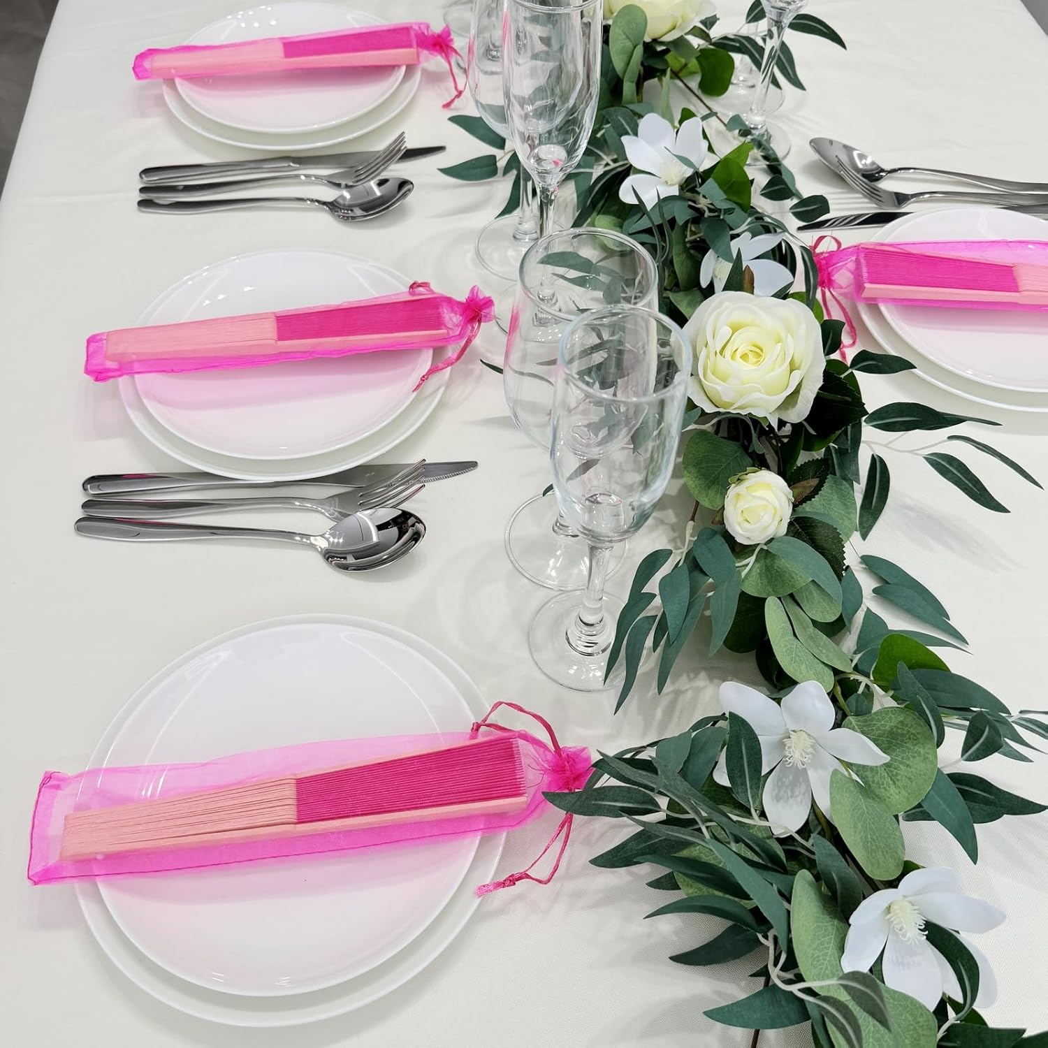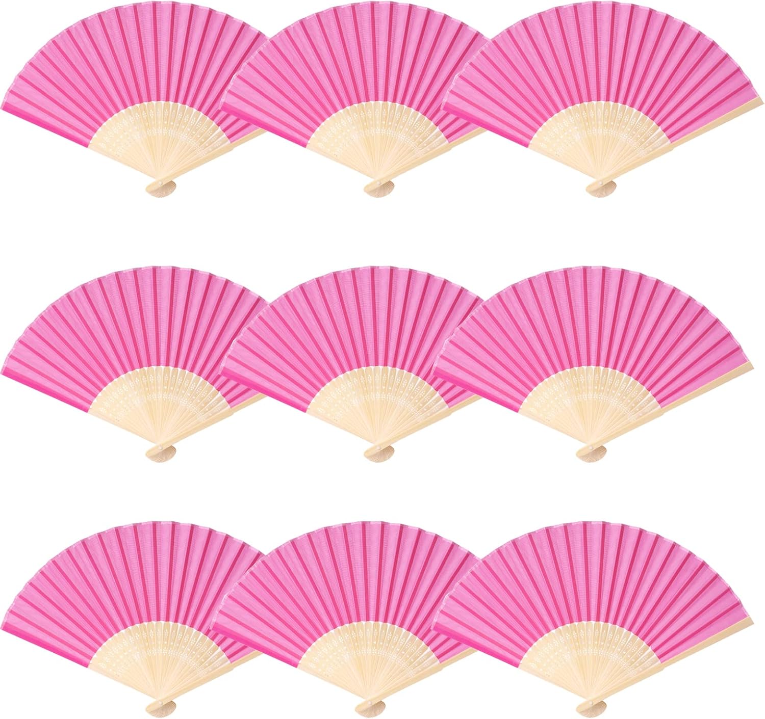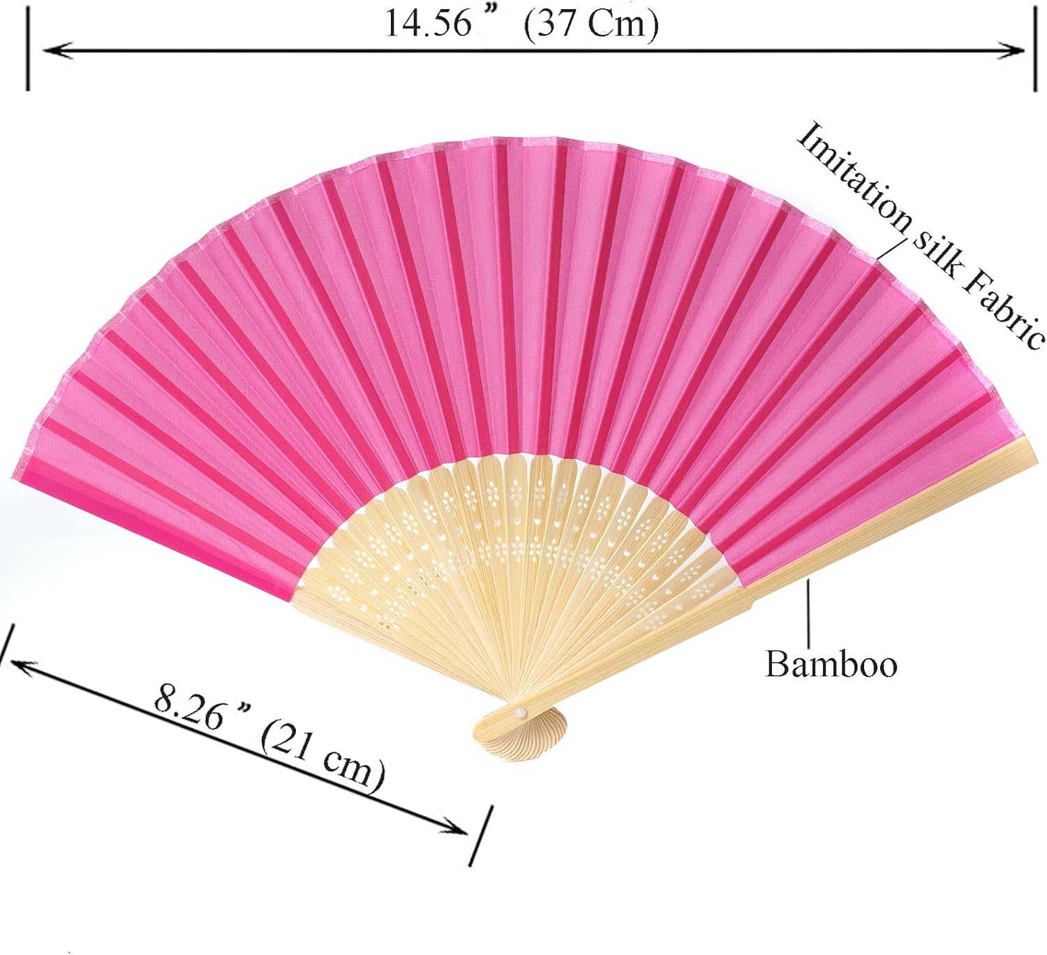 24pcs Imitated Silk Hand Fan Imitated Silk Fabric Bamboo Handheld Folded Fan Bridal Dancing Props Church Wedding Party Favors with Organza Bags (Hot Pink)