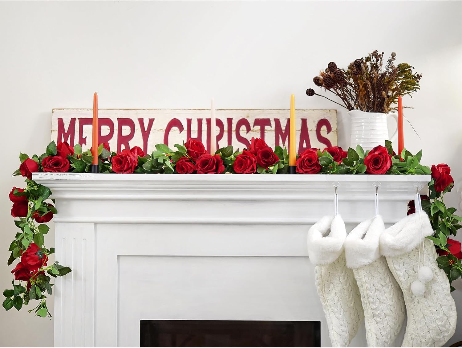 FiveSeasonStuff 29 Ft 4 Pack Rose Silk Flower Garland Artificial Flowers Decoration Hanging Floral Décor for Wedding Baby Shower Birthday Party Garden (Venetian Red)