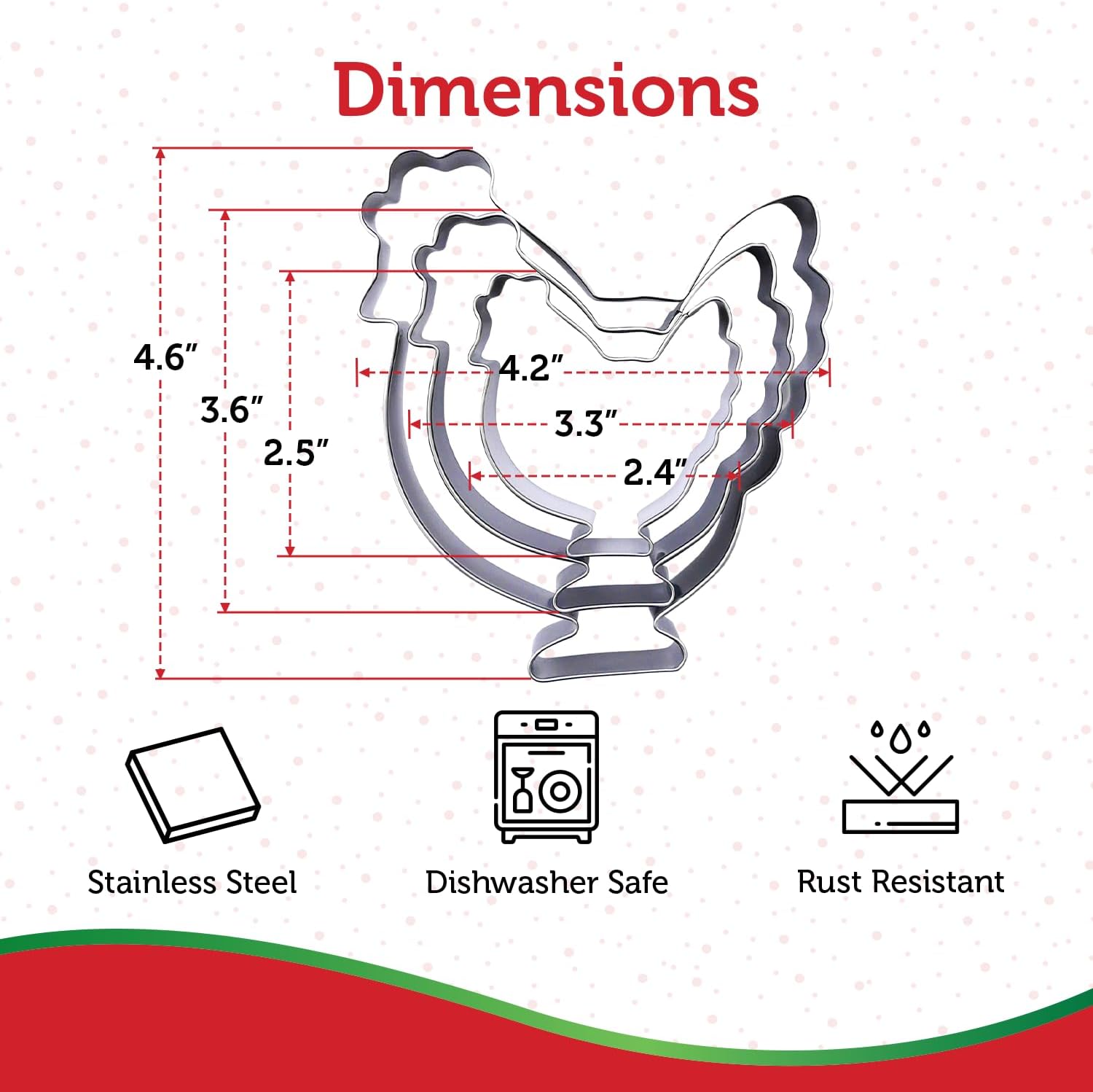 - Chicken-Shaped Design For Farm-Themed Fun: Create delightful farm animal-shaped treats for barnyard-themed parties, or everyday baking with these chicken cookie cutters 3 piece set; add country flair to cookies, sandwiches, and more, making each bite fun