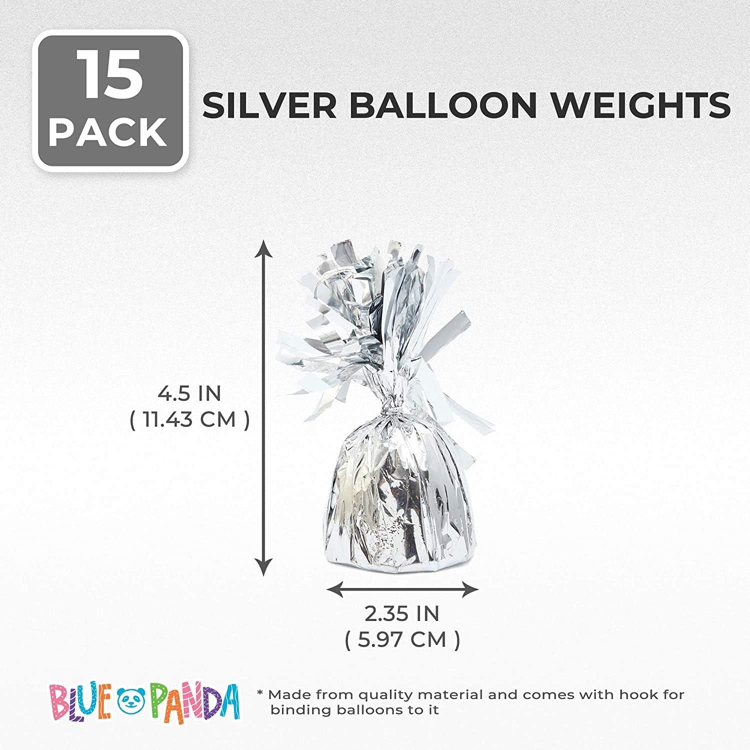 BLUE PANDA Balloon Weights - 4.5 x 2.35 in, Silver, 15 Pack - Table Balloon Stand Weight & Holder with Tinsel Tassel Fringe & Hook