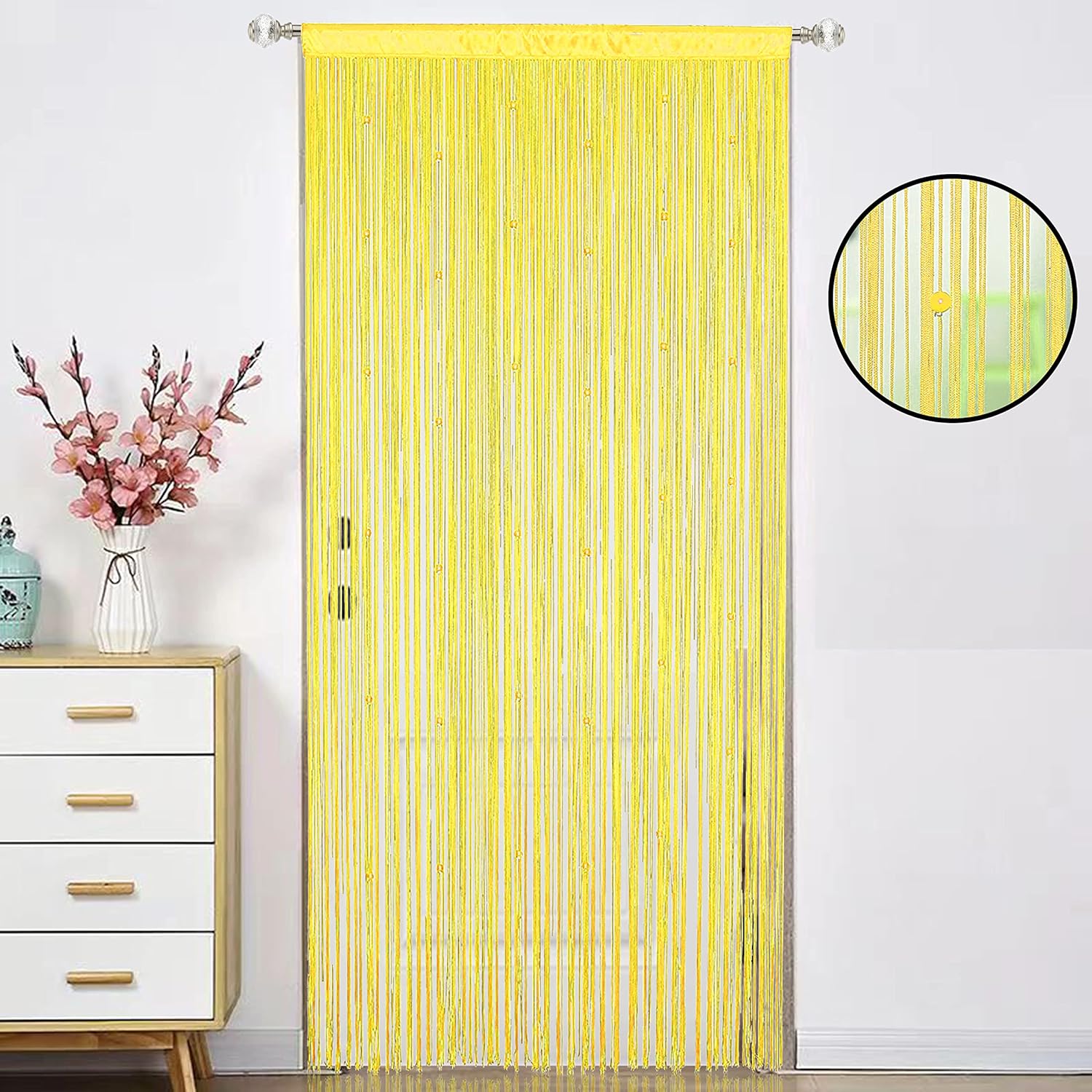 Beaded Curtain Beads Door String Curtains Ideal for Living Room Decor Wall Hanging Fringe Doorway Divider Bedroom Backdrop Hippie Window Closet Privacy Rod Pocket Dense (100x200cm,Yellow)