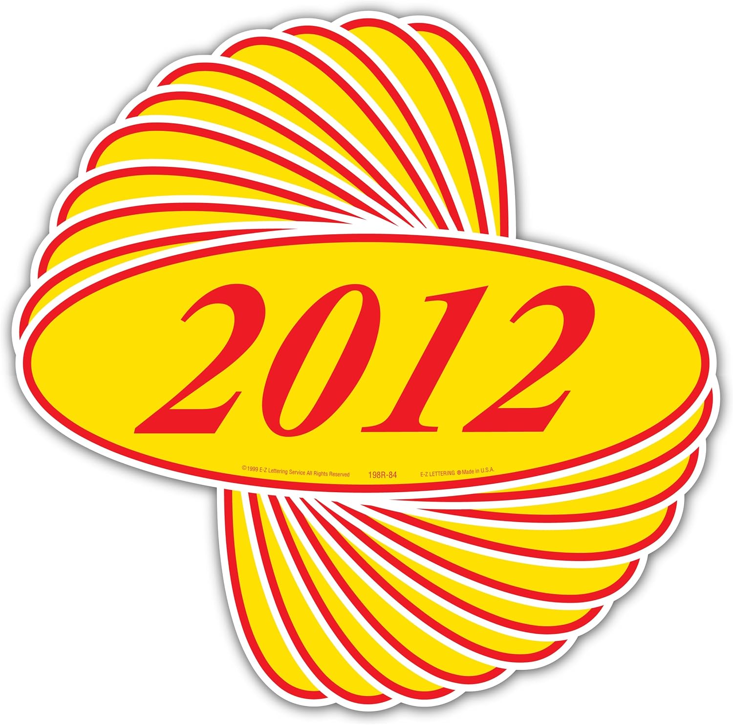 - RED on Yellow pack Oval, Adhesive Windshield Year Model Sign. HUGE π₯ 1 Dozen Year 2012 Pack