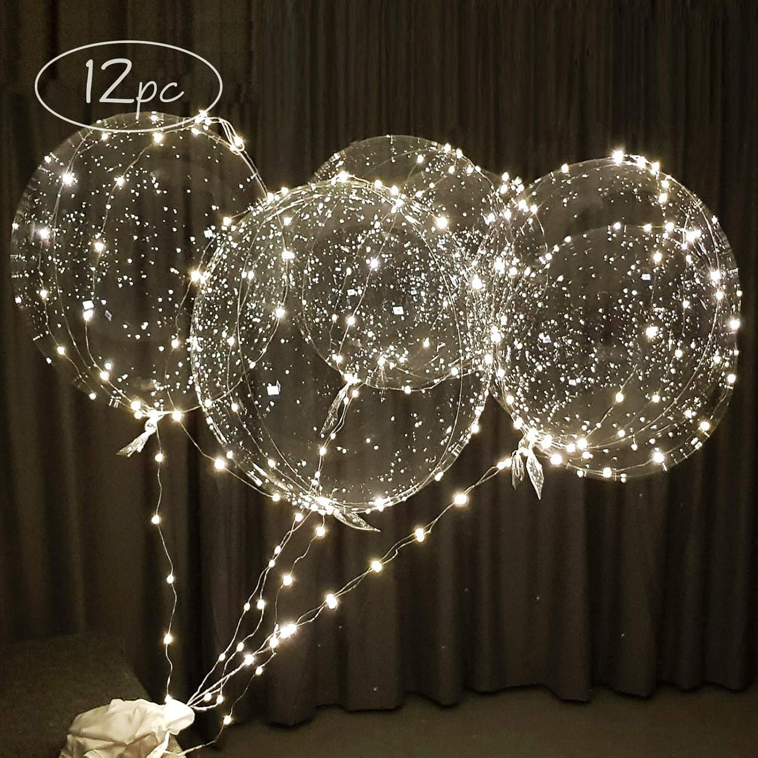 Lightsfever LED Light up Party Balloons with Batteries, 22 inch warm white Big Size Clear Bobo Balloons for Helium or Air, thanks giving party balloons(12 pack warm white)