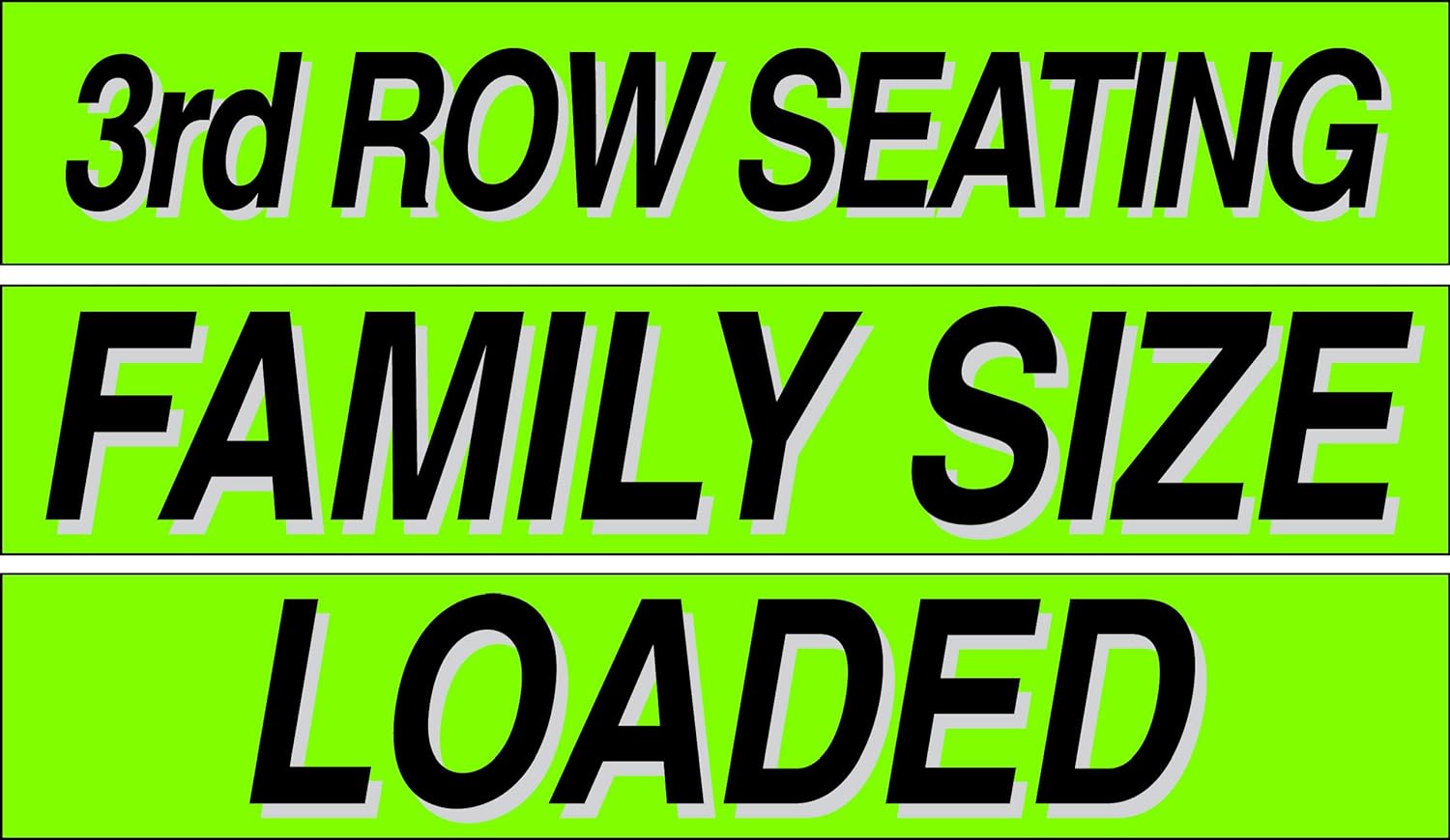 - 3rd Row Seating, Family Size, Loaded Stickersđź’Ą 1 Dozen Each, Car Lot Pro Pack 15" Slogans