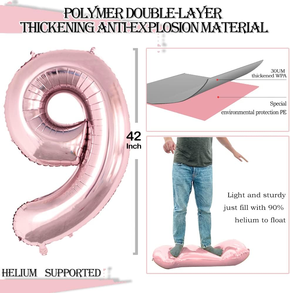 - Package Includes:Number 9 Balloons*3,42 inch,32 inch,16inch each,Straw*1