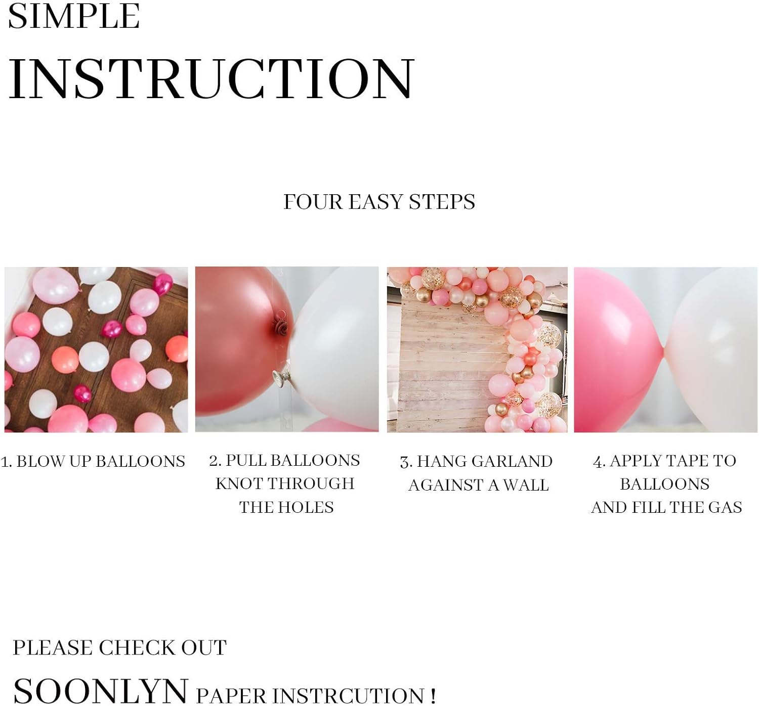- 30% Thicken Balloon Arch Kit: 4 pcs balloon acessories. Soonlyn rose gold balloons garland are pink,baby pink,pearl rose gold,white,gold chrome,glitter balloons