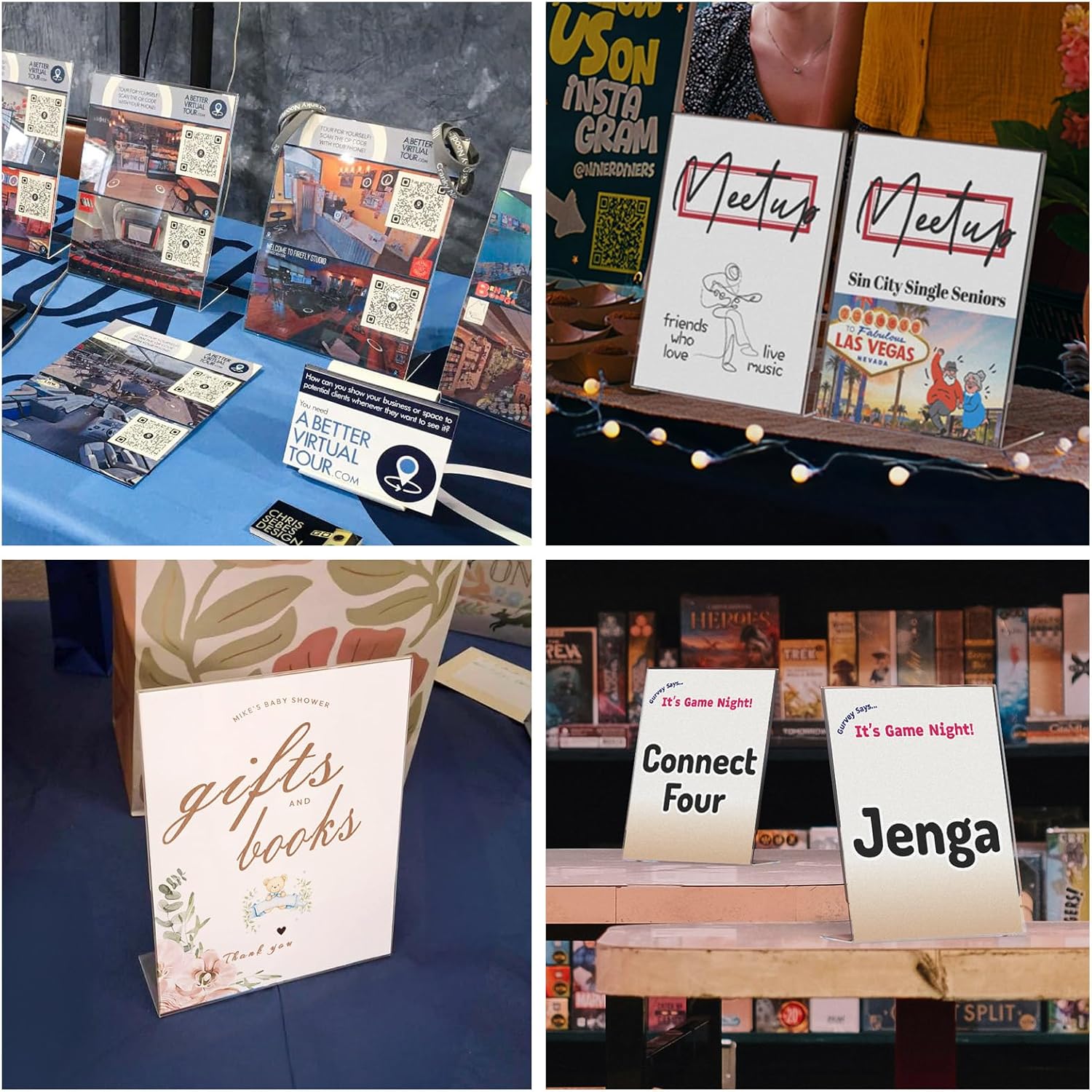 - FULL SIZE -Niubee acrylic slanted sign holder including 8.5x11 inch and 11x8.5 inch.