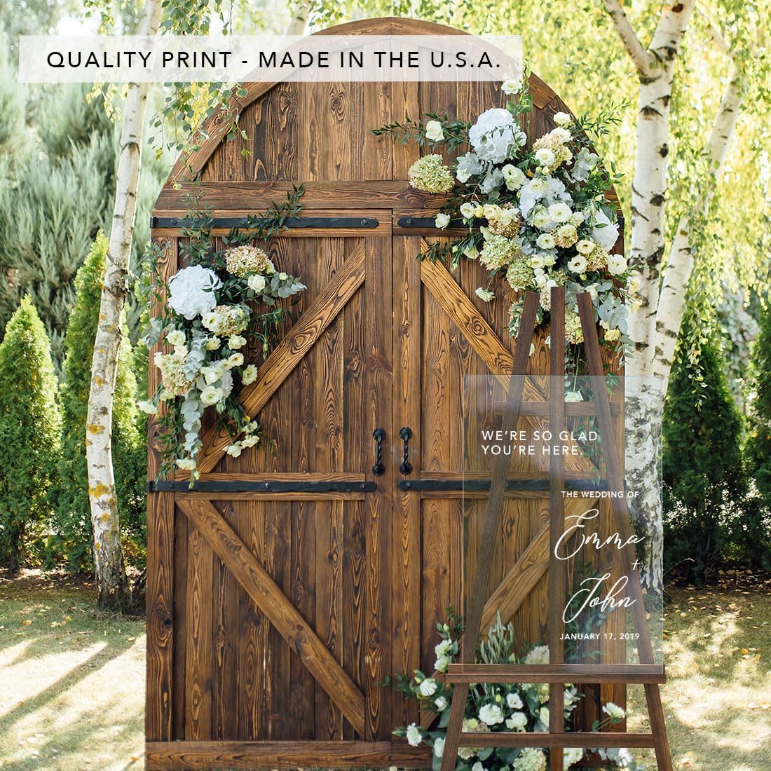 Andaz Press Custom Large Wedding Acrylic Sign, 16 X 24 Inches, So Glad You'Re Here, Personalized Sign, Welcome Sign For Modern Wedding Theme Wedding Welcome Sign