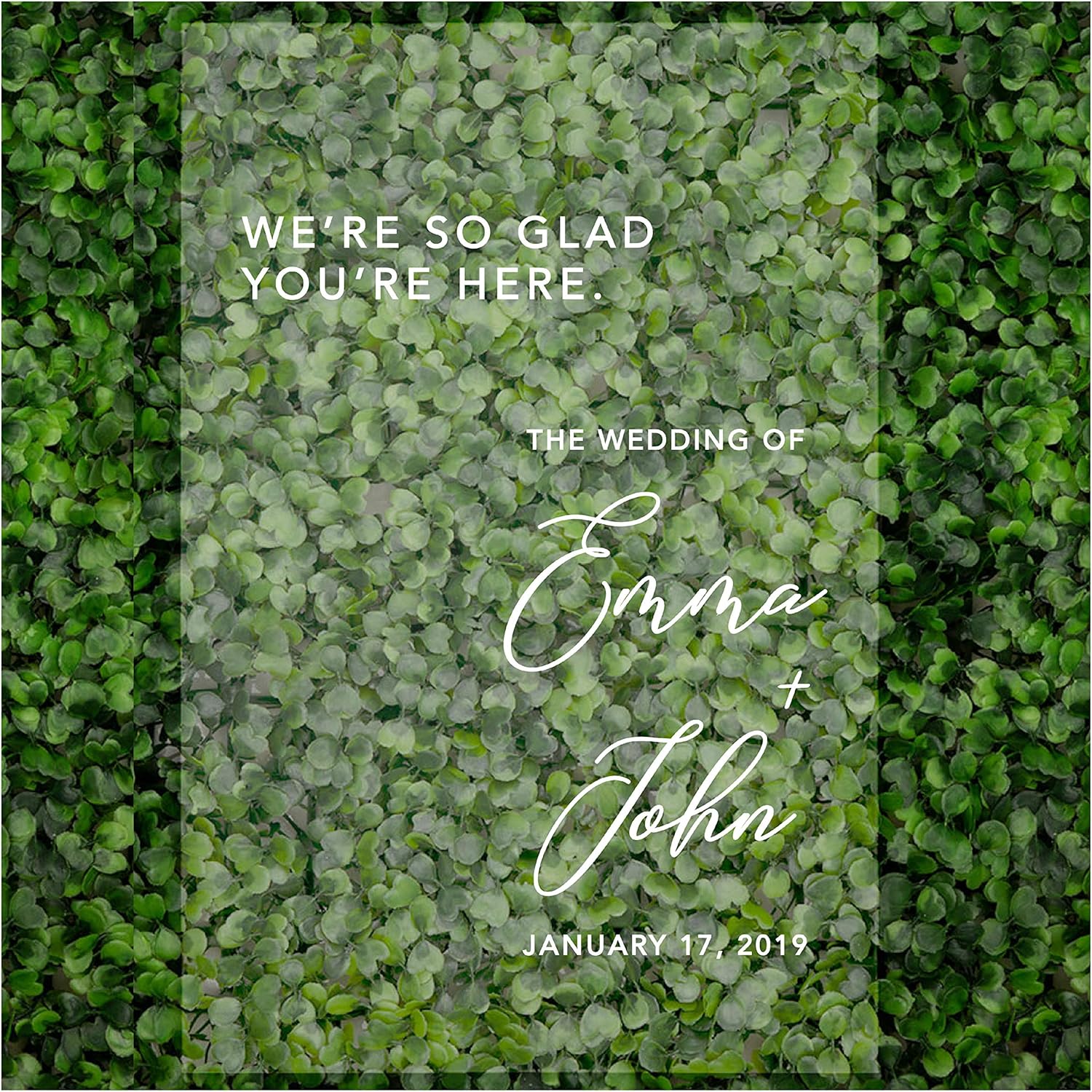 - ACRYLIC WELCOME SIGN FOR WEDDING Personalize your celebration with a personalized welcome wedding sign. The couples custom names and dates blend seamlessly with the overall design, creating a unique welcome to our wedding sign. This durable large acrylic wedding sign measures 16 x 24 inches and is a thick 3 mm.