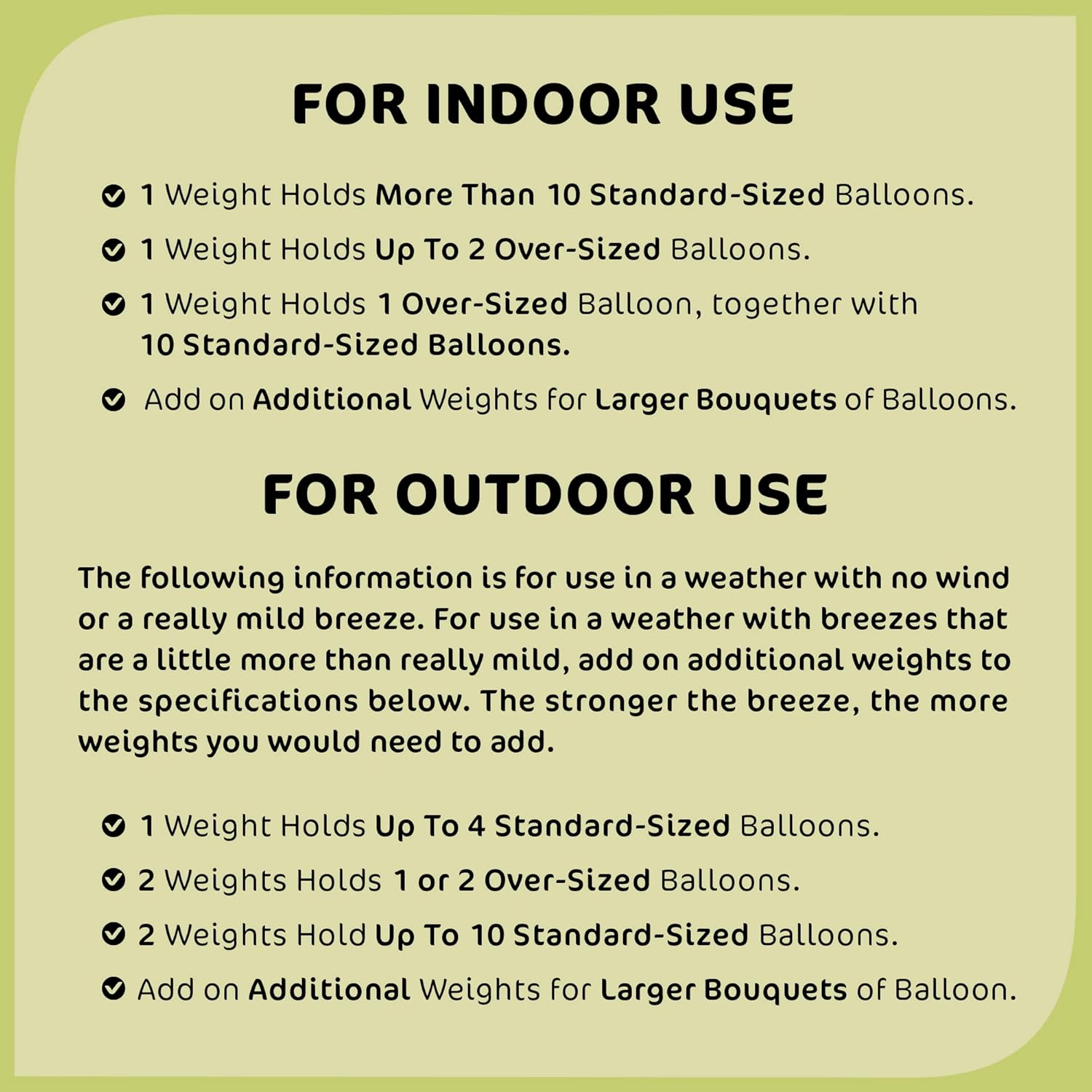 - WEIGHTS THAT EXCEED YOUR EXPECTATIONS! We are confident that you will be grateful to yourself for purchasing our decorative balloon weights lot, because its attractiveness & quality is unmatched. So, what are you waiting for? Go ahead, & click “Add to Cart” now. Package includes: 72 pieces.