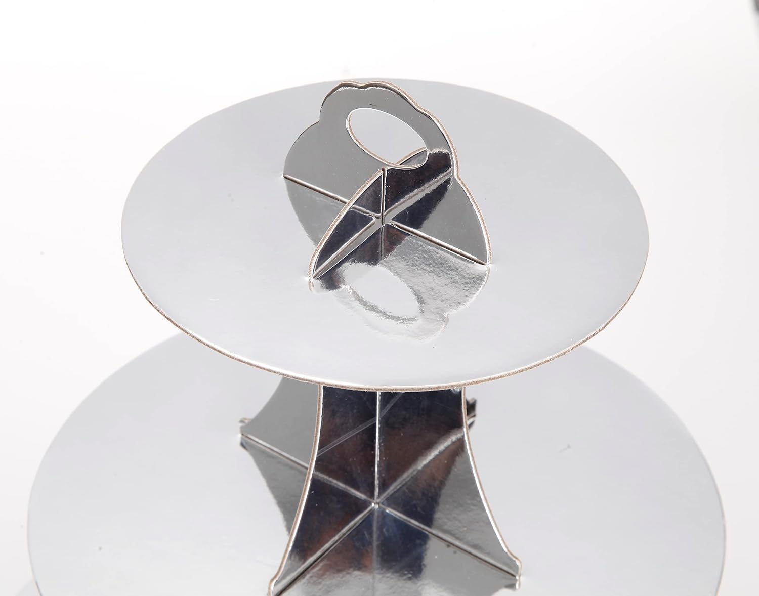 3-Tier Cupcake Stand, Sliver Cardboard Cake Stand Holder, Tiered DIY Cupcake Stand Tower for Dessert Table Displays, Birthday Theme Party Favors Decoration, Floral Tea Party, 12" W x 12.8" H