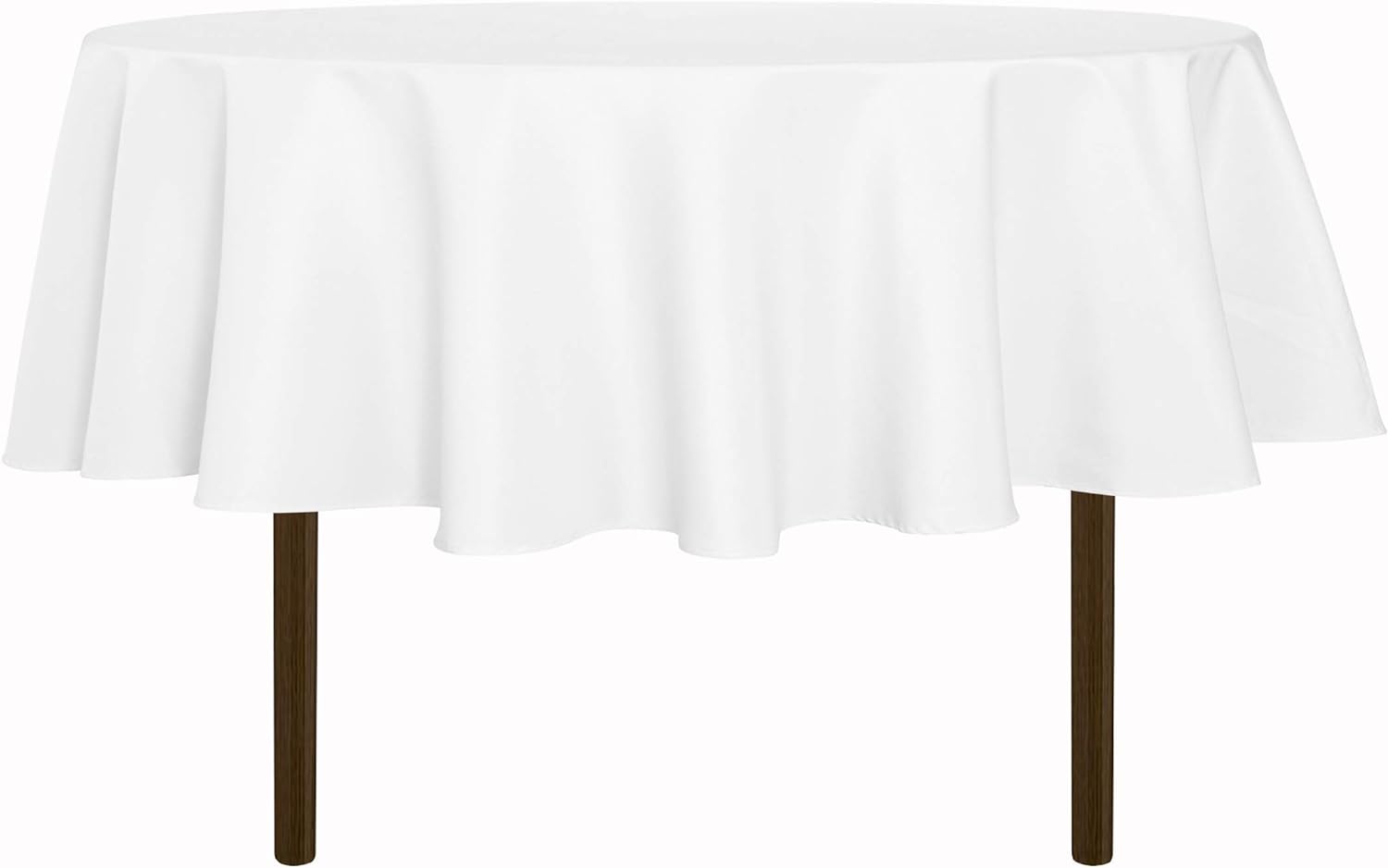 sancua Round Tablecloth - 70 Inch - Water Resistant Spill Proof Washable Polyester Table Cloth Decorative Fabric Table Cover for Dining, Buffet Parties and Camping, White(Fits 24-58 Inch Tables)