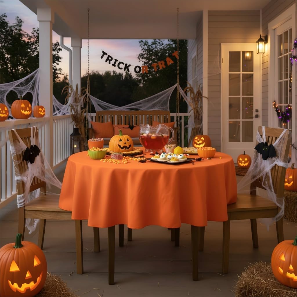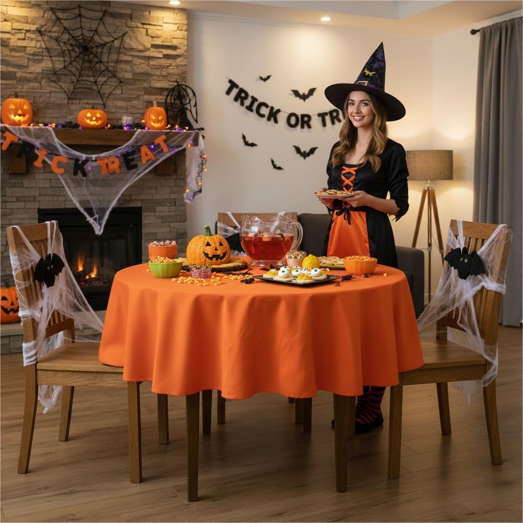 sancua Round Tablecloth - 60 Inch - Water Resistant Spill Proof Washable Polyester Table Cloth Decorative Fabric Table Cover for Dining Tables, Buffet Parties and Camping, Orange