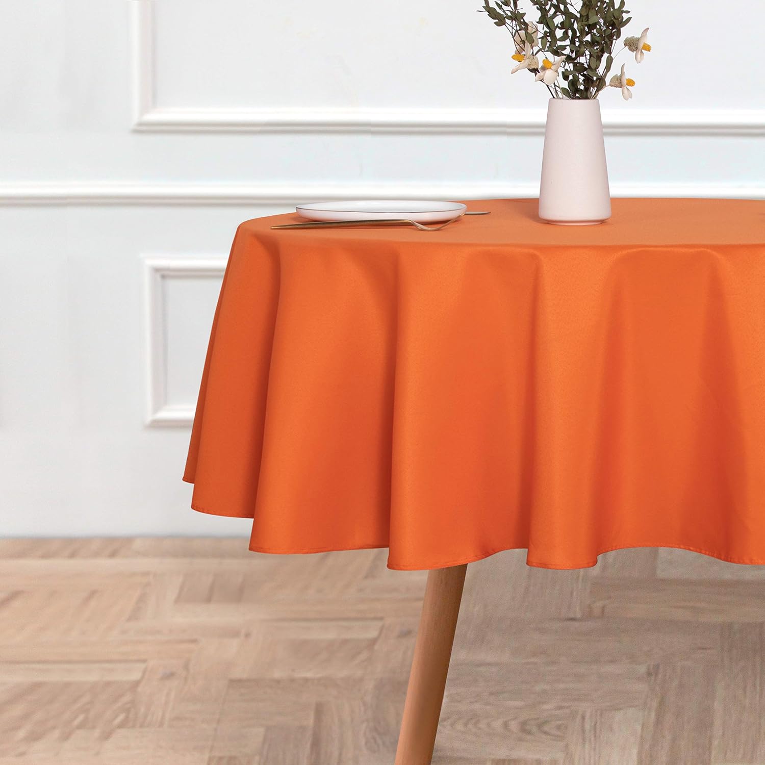 sancua Round Tablecloth - 70 Inch - Water Resistant Spill Proof Washable Polyester Table Cloth Decorative Fabric Table Cover for Dining Tables, Buffet Parties and Camping, Orange