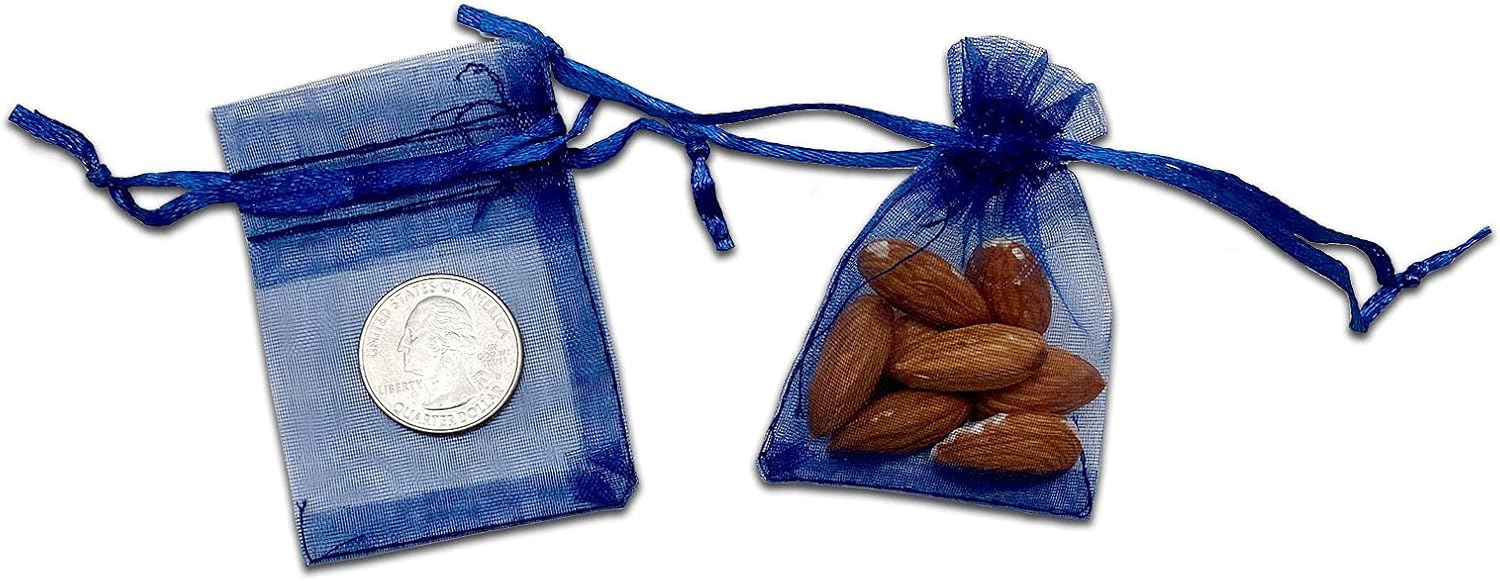 TheDisplayGuys 48-Pack 2" x 2-3/4" Navy Blue Sheer Organza Gift Bags with Drawstring, Jewelry Candy Treat Wedding Party Favors Mesh Pouch
