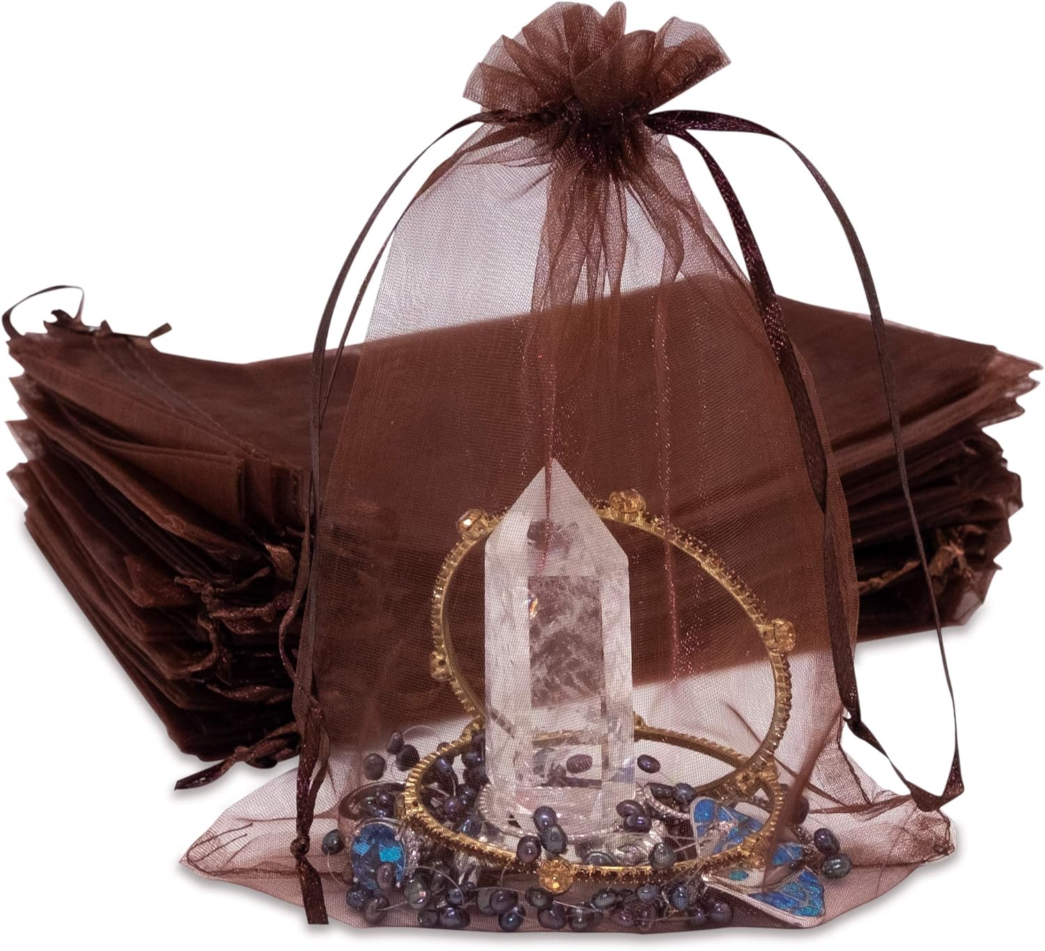 TheDisplayGuys 48-Pack 6x8 Brown Sheer Organza Gift Bags with Drawstring, Jewelry Candy Treat Wedding Party Favors Mesh Pouch