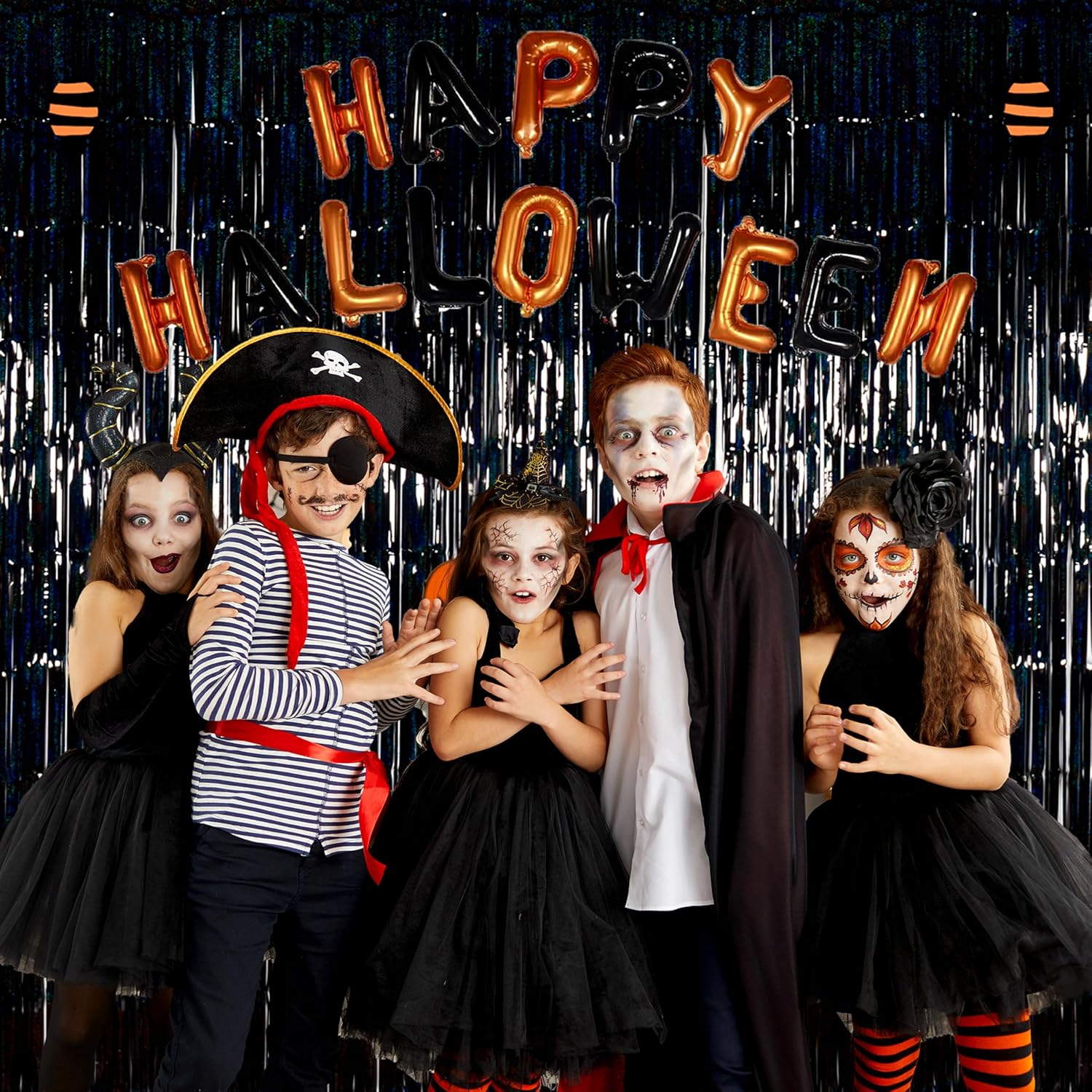 Melsan 2 Pack 3.2 ft x 8.2 ft Tinsel Foil Fringe Curtains Backdrop, Sparkle Metallic Foil Curtains for Halloween Graduation Retirement New Years Party Photo Booth Props Decoration (Black)