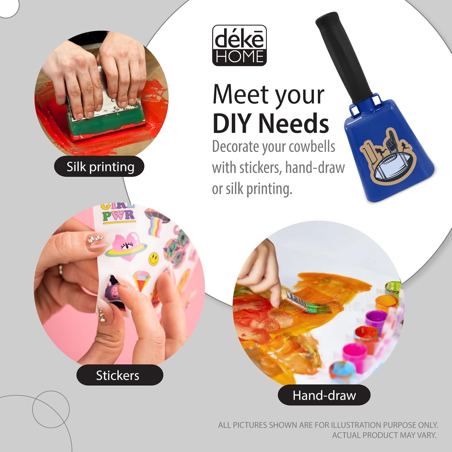 Deke Home - 2 Pack 7 Inch Steel Cowbells with Handle, Loud Noise Makers for Football, Sports, Parties, Competitions, School Spirit & Safety, Large Hand Bell for Cheering & Percussion Instrument
