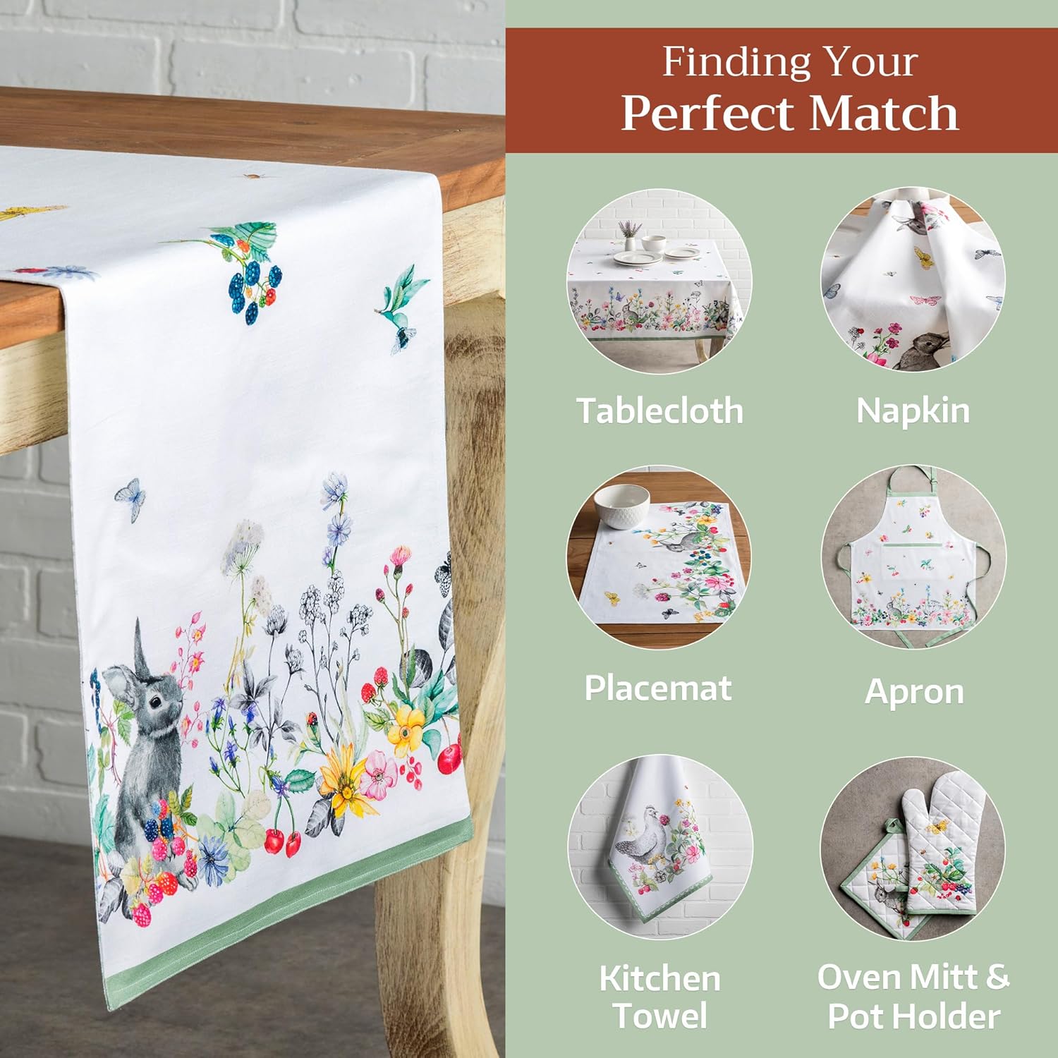 Maison d' Hermine Table Runner 100% Cotton Double Layer Table Runners 108 inches Long Decorative for Kitchen Dining Party Baby Shower Wedding Bridal Shower Spring Summer (Printemps, 14.50" x 108")