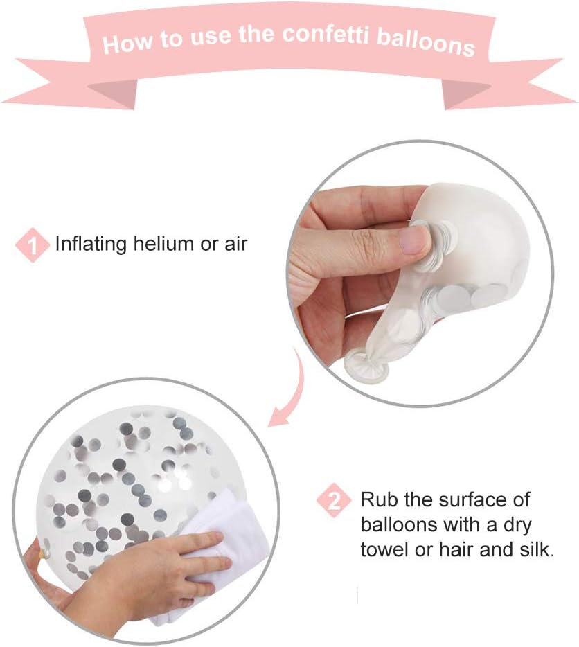 - 【Non-toxic & Safe】:Silver confetti and white balloons arch kit are made from imported high quality latex materials. Non-toxic and eco-friendly, won't be torn easily.Both supported helium and air. Please hang it in your ceiling or wall, and enjoy and cherish this exciting moment.