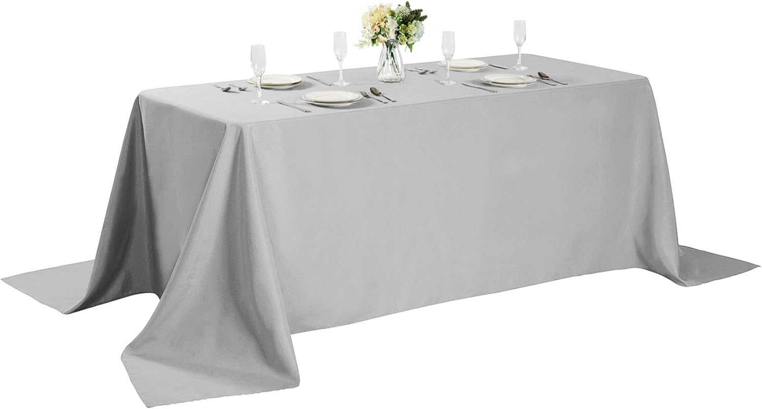 Rectangle Tablecloth 90x156 inch Washable Polyester Fabric Table Cloth for Wedding Party Dining Banquet Decoration(90x156, Silver)