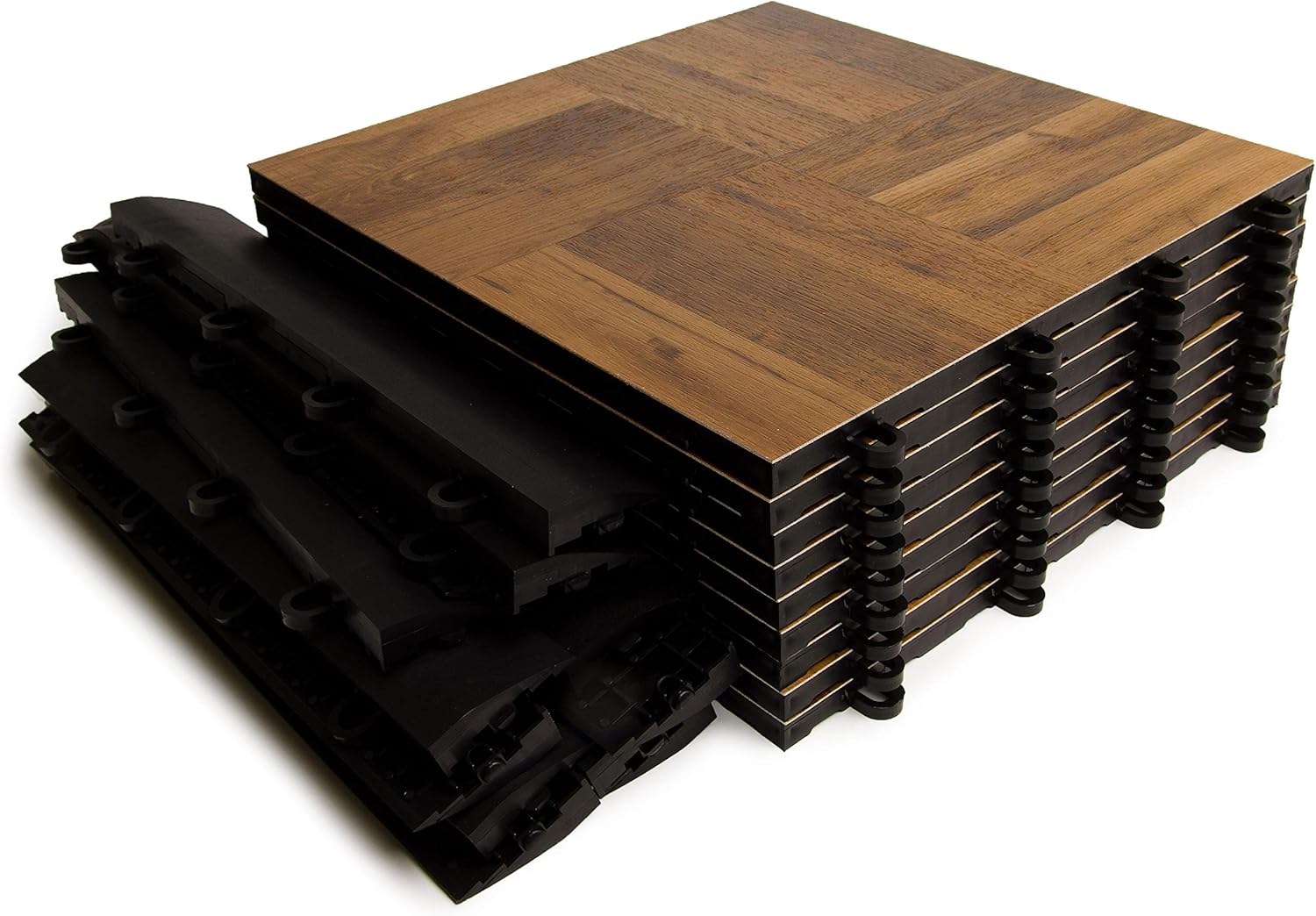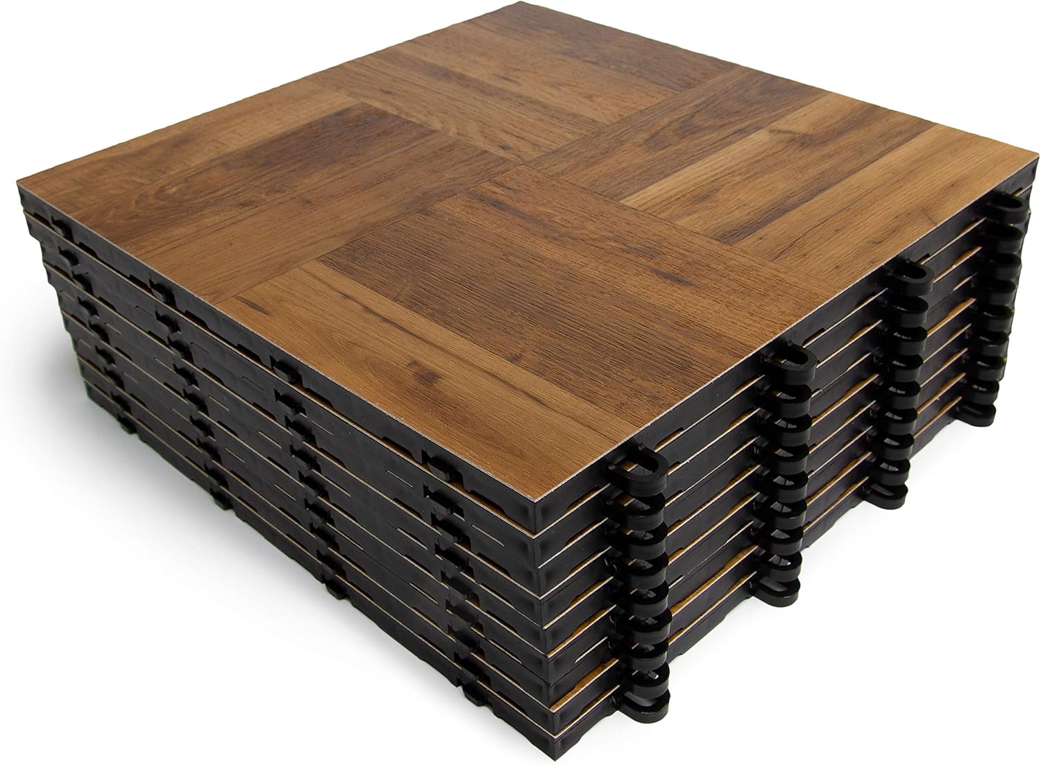 Big Floors 3X3DKOAKFLOOR Interlocking Lightweight Plastic Modular Dance Floor Kit (3' x 3'), Dark Oak, 21 Piece
