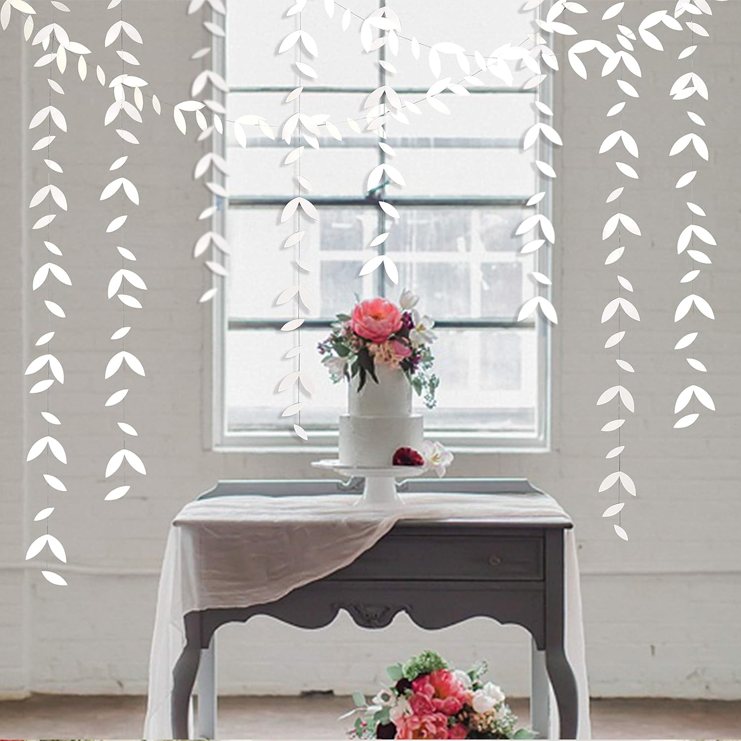 - 🤍Unique Design - Our white party leaves garland streamer are made of pearl paper,making your decoration more gorgeous and noble.