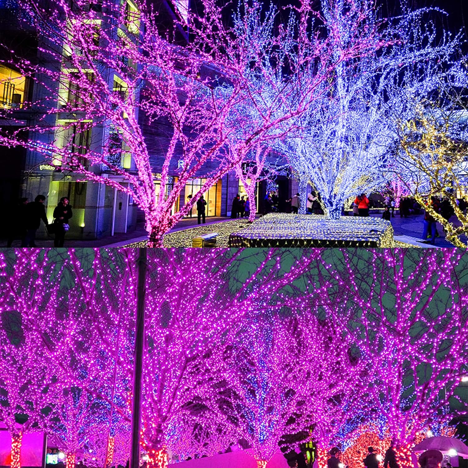 - 98.5ft Halloween Decorations string lights: With 300 Purple LED bulbs. Each black wire lights has end-to-end connection, you can connect up to 3 sets together to illuminate a wider range.