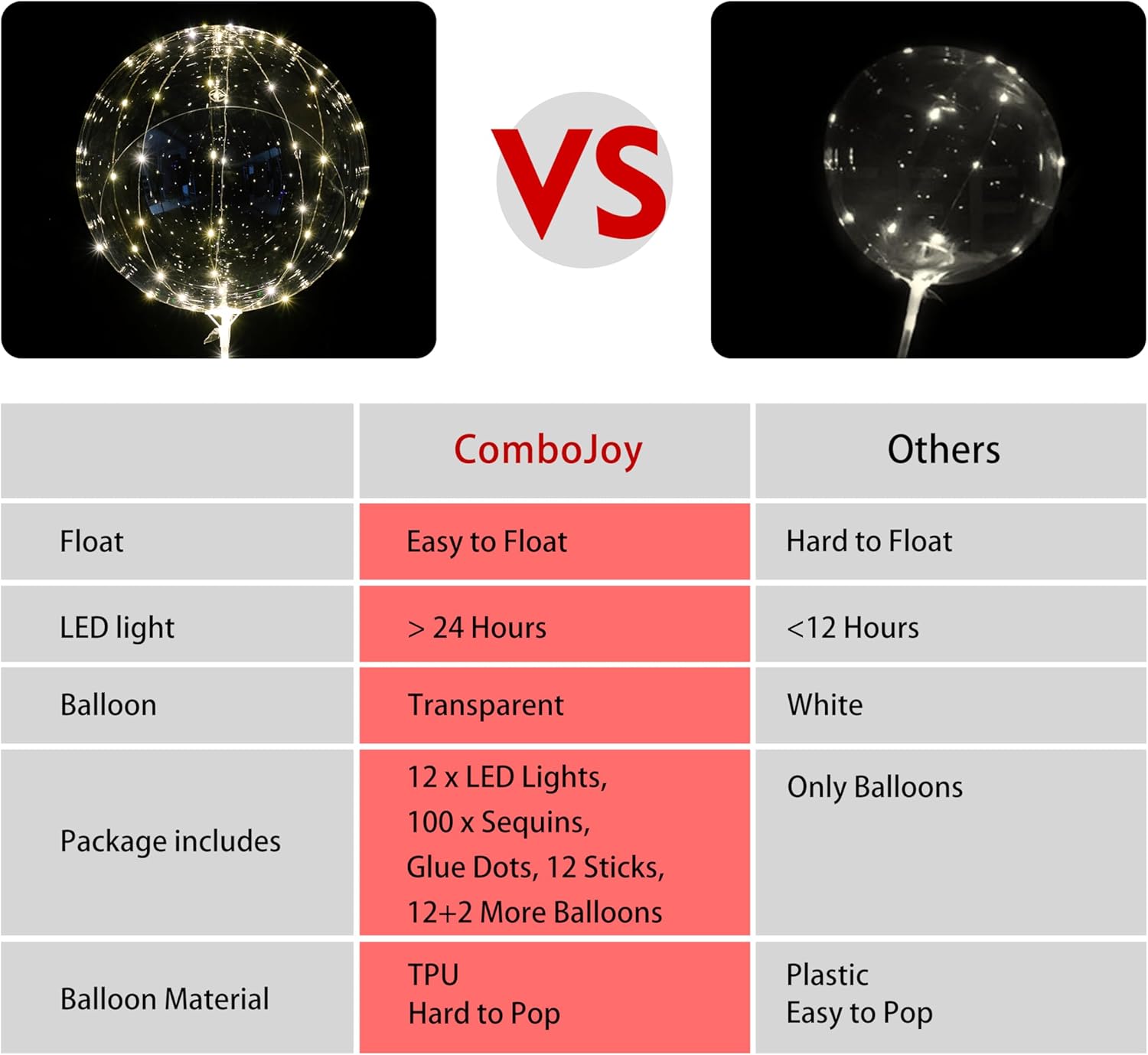 - HIGH QUALITY - Our clear balloons with lights are made of high quality TPU. It's easy to pump up and light weight. Pumped with helium, light balloons can float even wrapped with LED strings. LED lights last for more than 24 hours and balloon holds helium for more than 3 days
