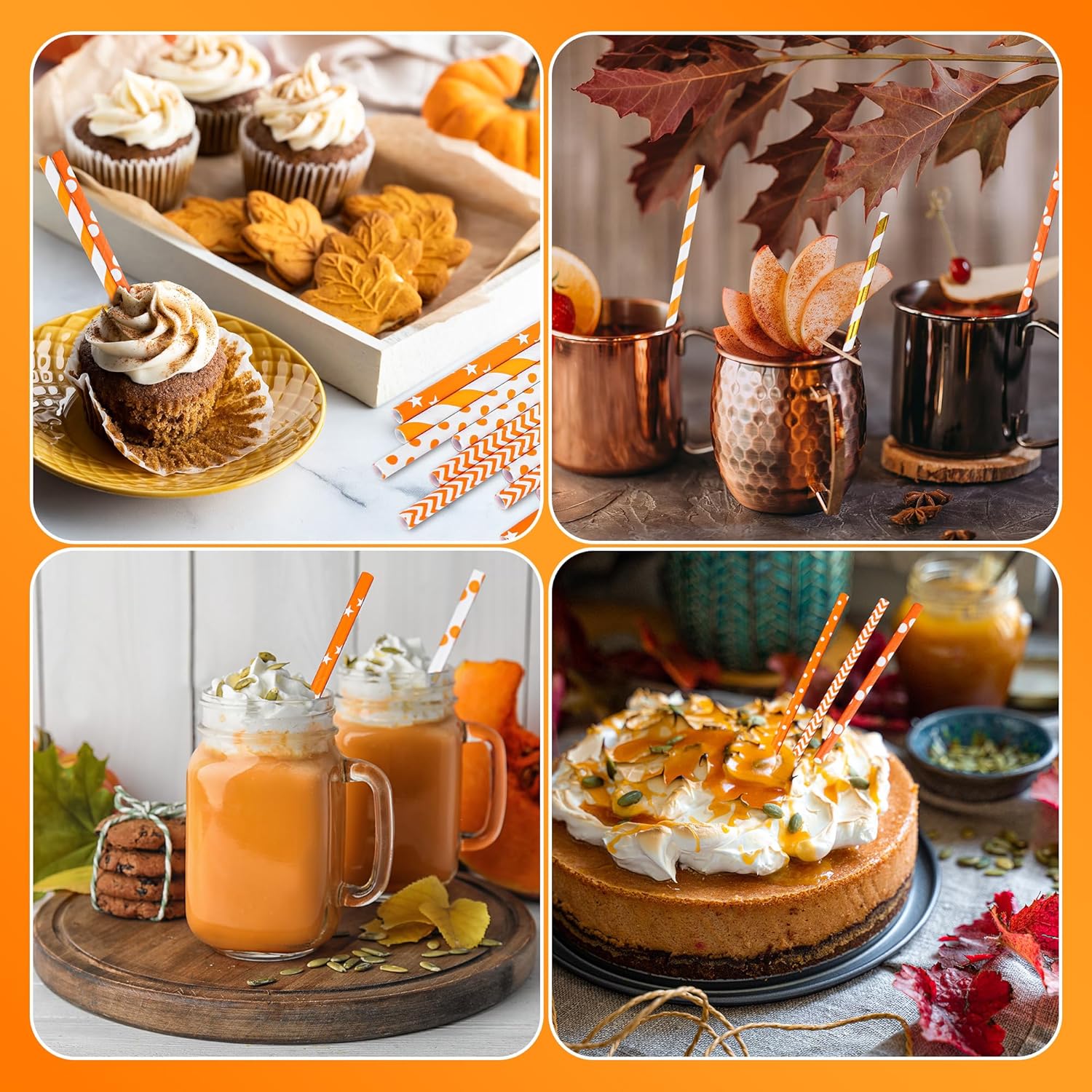 - Varied Thanksgiving styles: there are 8 main colors and styles of autumn Thanksgiving party straws, including: orange wave, orange stripe, orange dot, gilt stripe, orange dot with white background, white and orange dot, star with orange background, dot with orange background; 25 straws in each style, a variety of styles for your choice