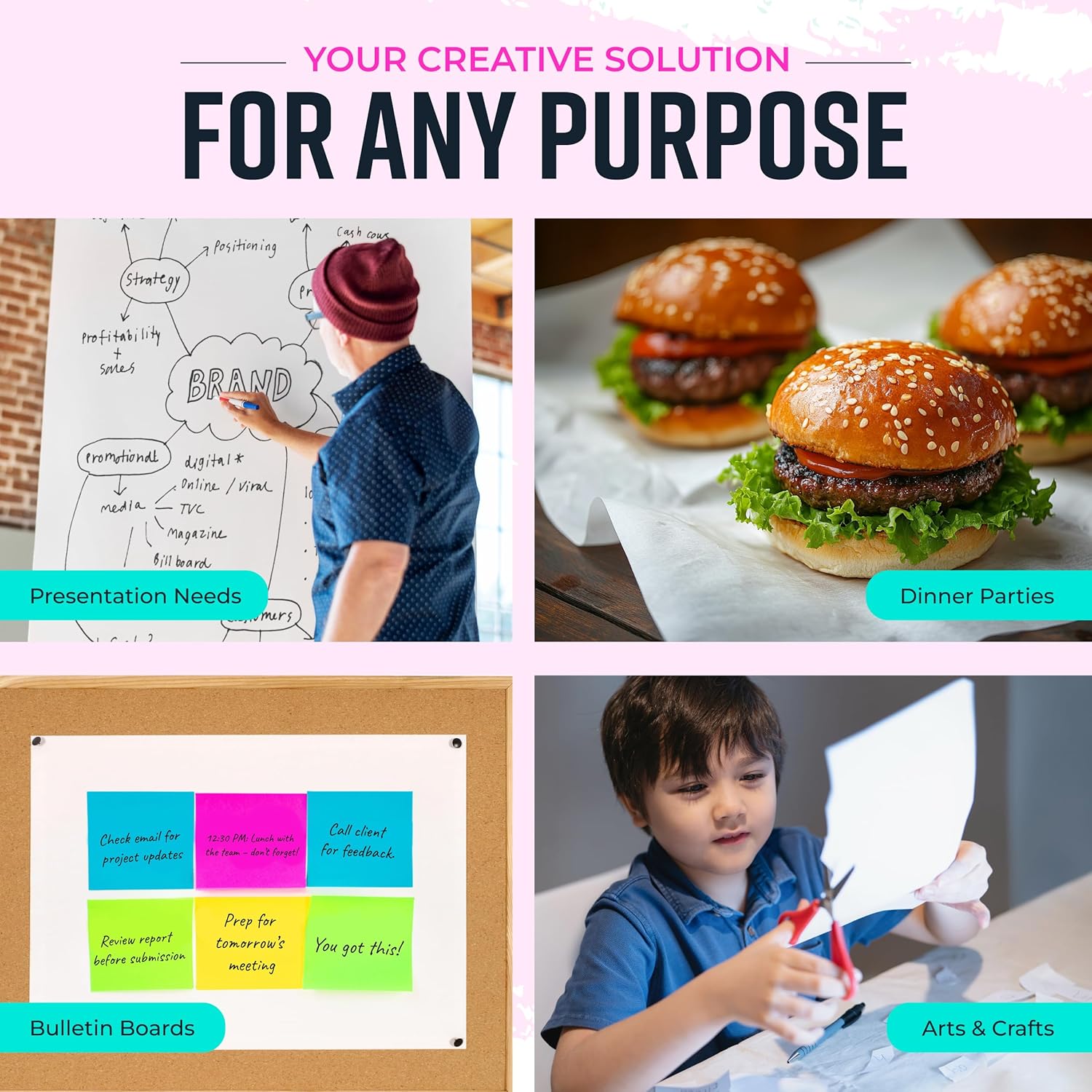 - Easily Customizable Size and Shape; This big roll paper, an art easel in its own right, allows you to cut and shape the paper as required, transforming into your own art board or even bulletin board paper roll