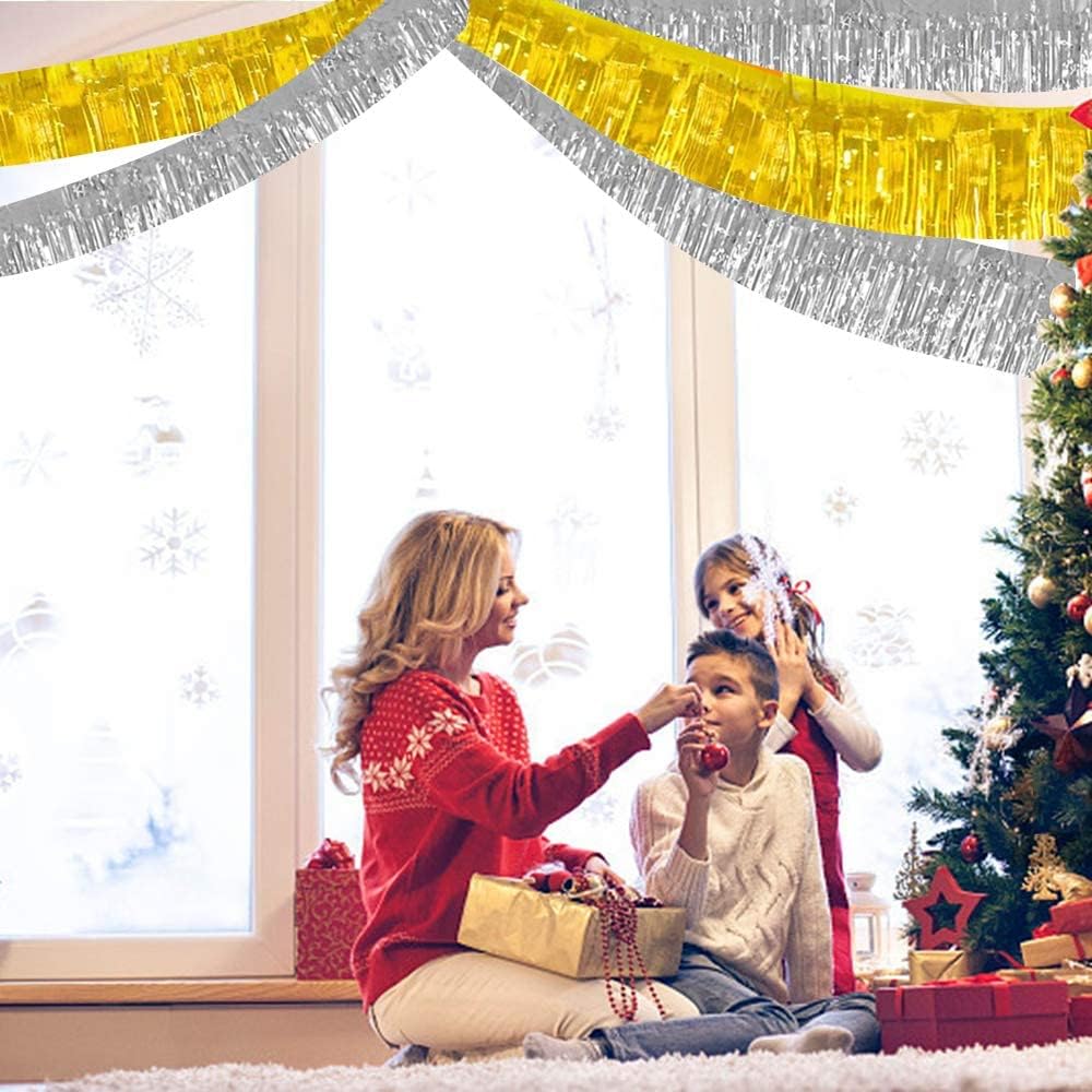 BEISHIDA 3 Packs 30 Feet Metallic Foil Fringe Garland Tinsel Streamers,Shiny Gold Wall Hanging Tinsel Fringe Banners for Wedding Birthday Party Decoration Halloween Christmas New Year