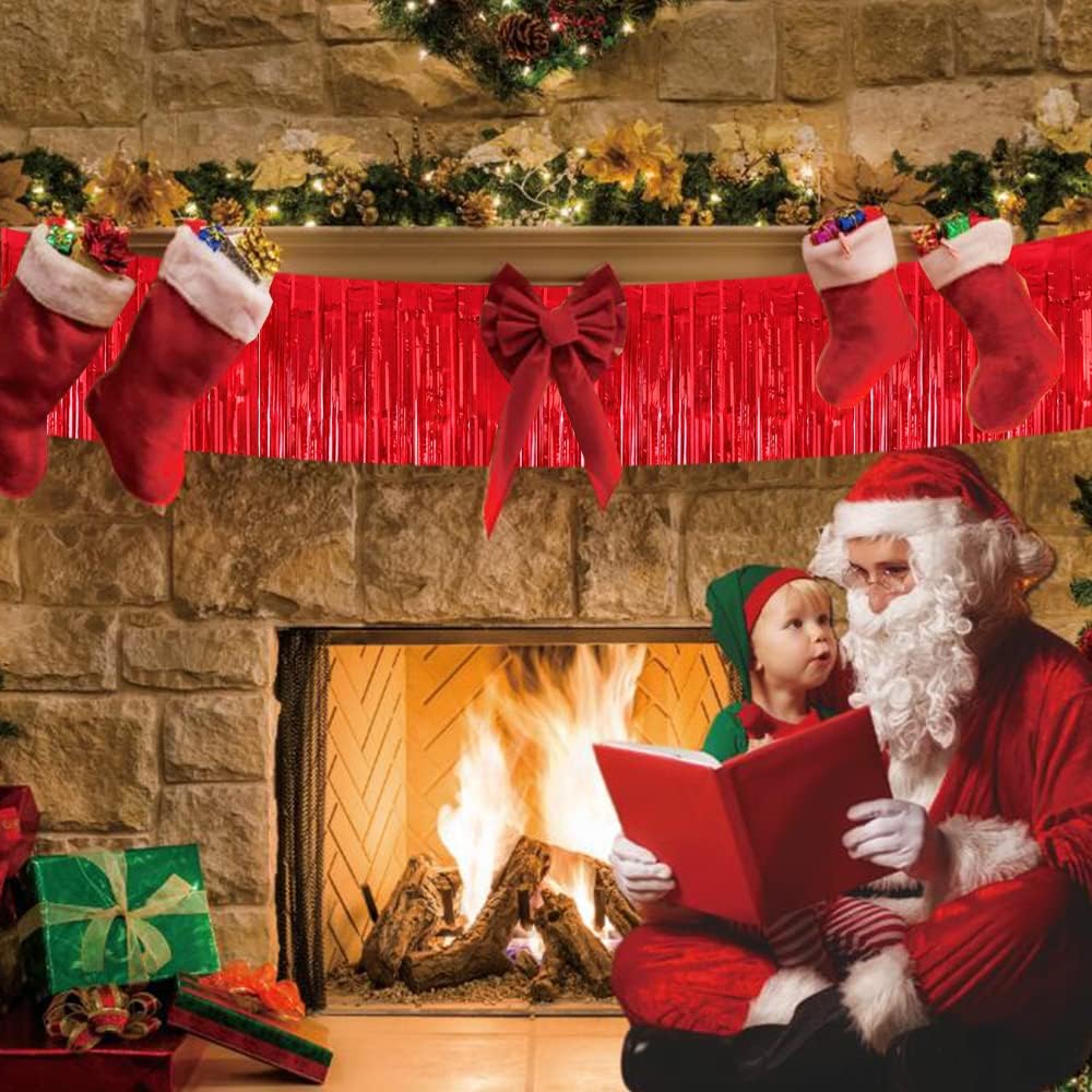 BEISHIDA 3 Packs 30 Feet Metallic Foil Fringe Garland Tinsel Streamers,Shiny Red Wall Hanging Tinsel Fringe Banners for Wedding Birthday Party Decoration Halloween Christmas New Year