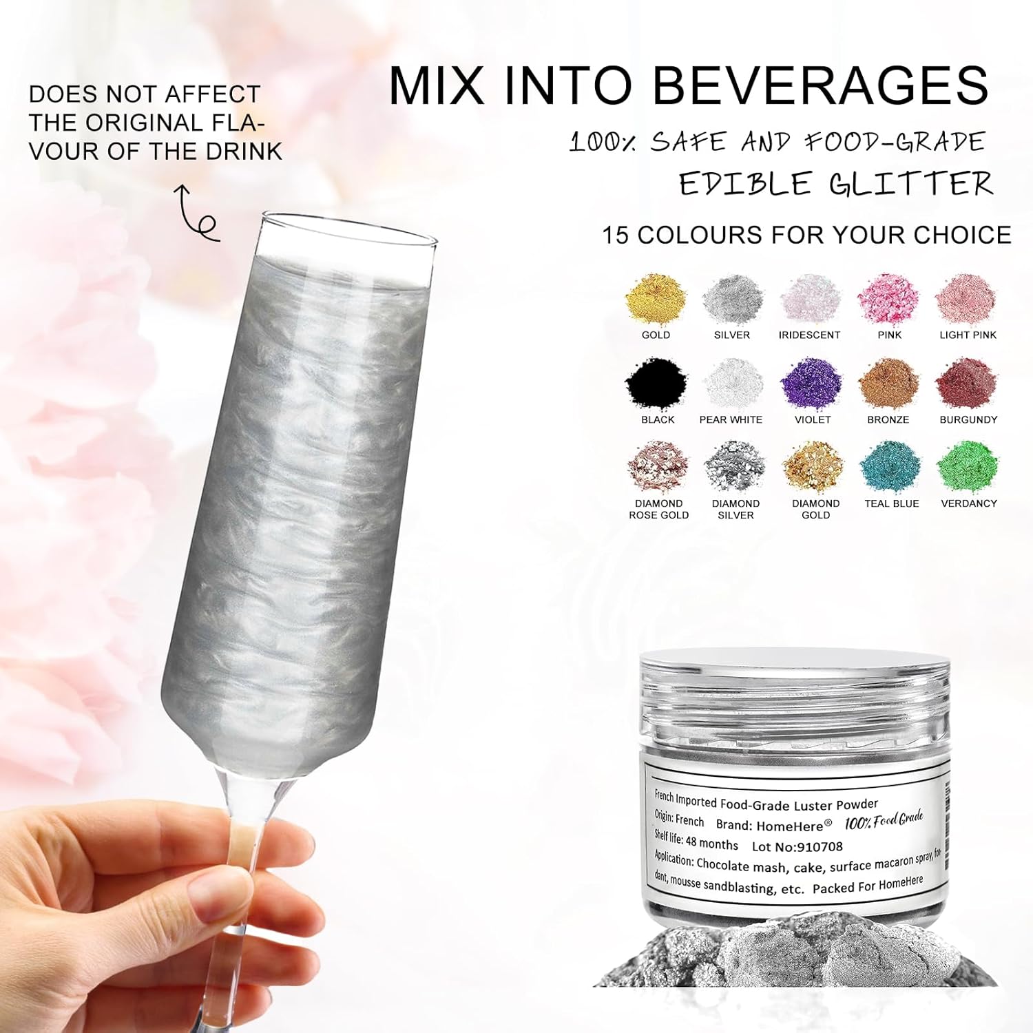 HomeHere Edible Luster Dust Food-Grade Glimmer Powder Glitter for Cake Decorating 7g, Edible Sprinkle Glitter for Cocktails Drinks Baking Candy Dessert Chocolate Vegan Tasteless