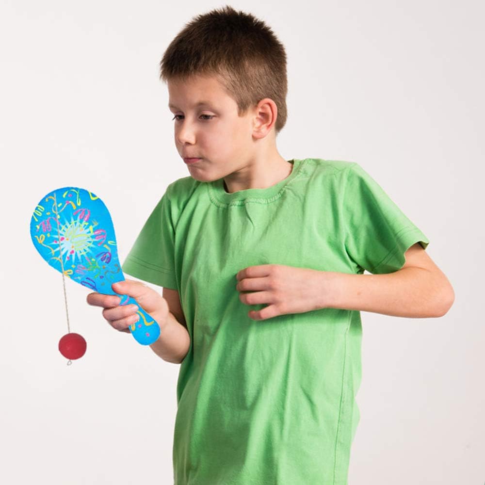 - BUILT TO LAST: We’ve combined a 9.25” plastic paddle, rubber ball, and elastic string to create a smile-sparking toy durable enough to withstand all the paddling action. Gather friends and family and compete who can hit the ball with consecutive flawlessness.