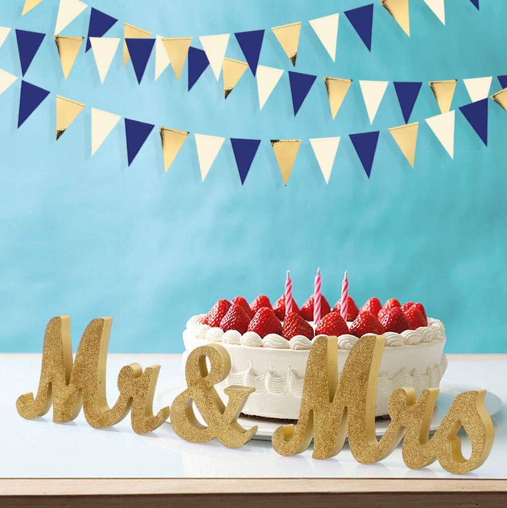- Environmental Material-Our gold and navy blue pennant bunting are made of two different materials paper.Double sided metallic paper and high quality card stock,safe and non-toxic,durable and reusable.