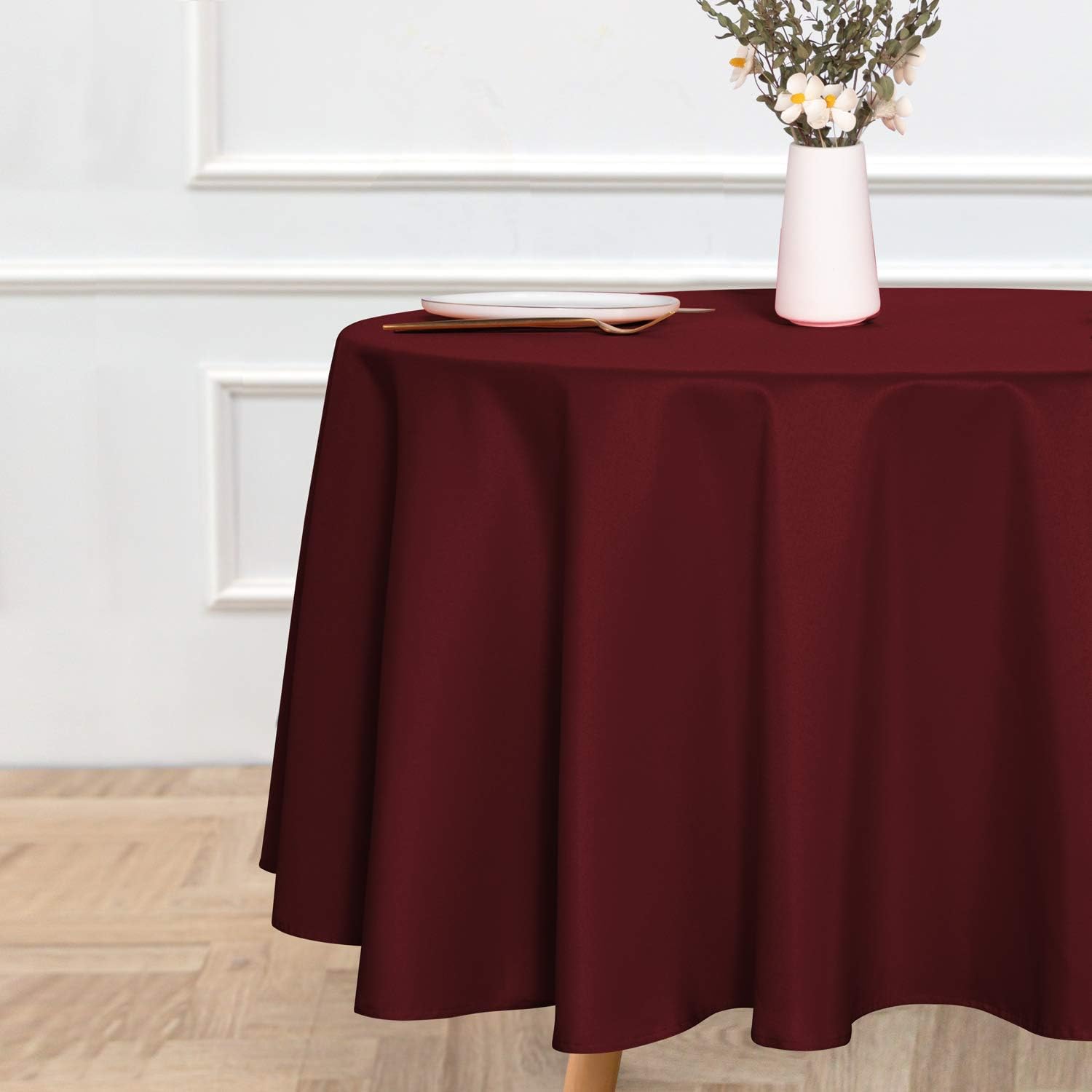 sancua Round Tablecloth - 90 Inch - Water Resistant Spill Proof Washable Polyester Table Cloth Decorative Fabric Table Cover for Dining Tables, Buffet Parties and Camping, Burgundy