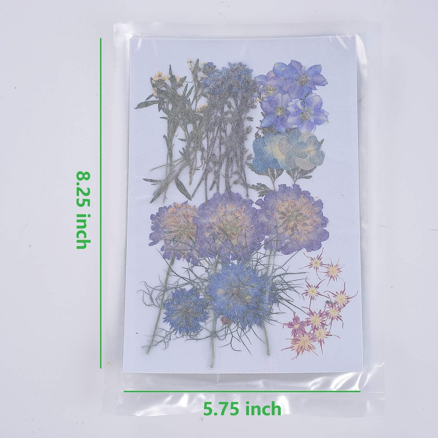 8 Types 46pcs Real Dried Pressed Flowers Leaf Plant Herbarium for DIY Resin Jewelry Making Floral Decors (Blue)