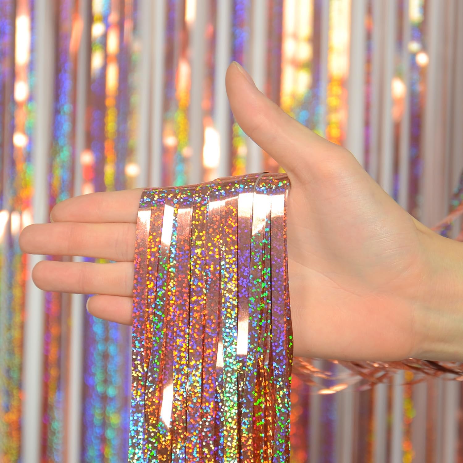 Foil Fringe Curtains Party Decorations - Melsan 3 Pack 3.2 x 8.2 ft Tinsel Curtain Party Photo Backdrop for Birthday Party Baby Shower Rose Gold