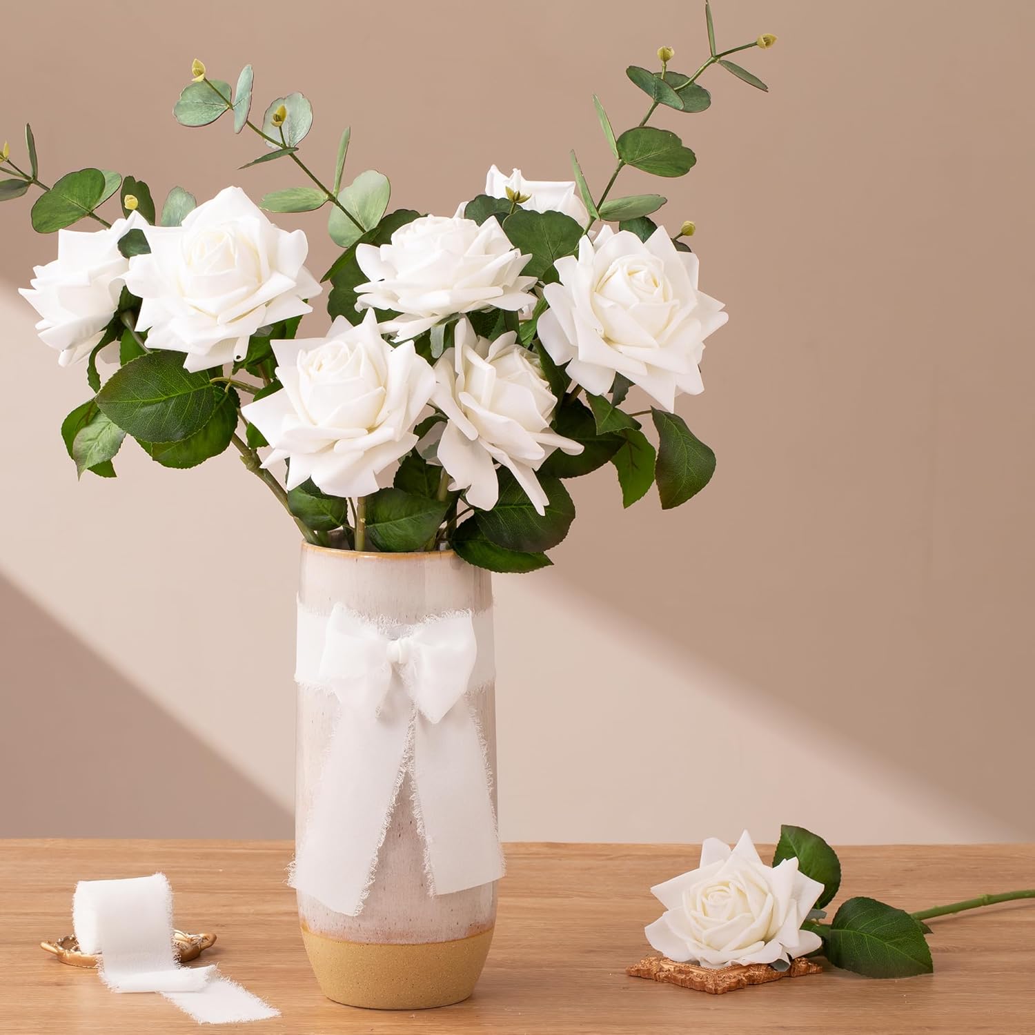 - 【Size and Color】Each roll of chiffon ribbon is 2 inches wide and 7 yards long, perfect for various creative uses such as making bows, decorating wreaths, and DIY crafts. This set includes 3 rolls ivory ribbons. These vibrant frayed ribbons add a rustic charm to your creations, ideal for bouquet wrap or gift ribbon.
