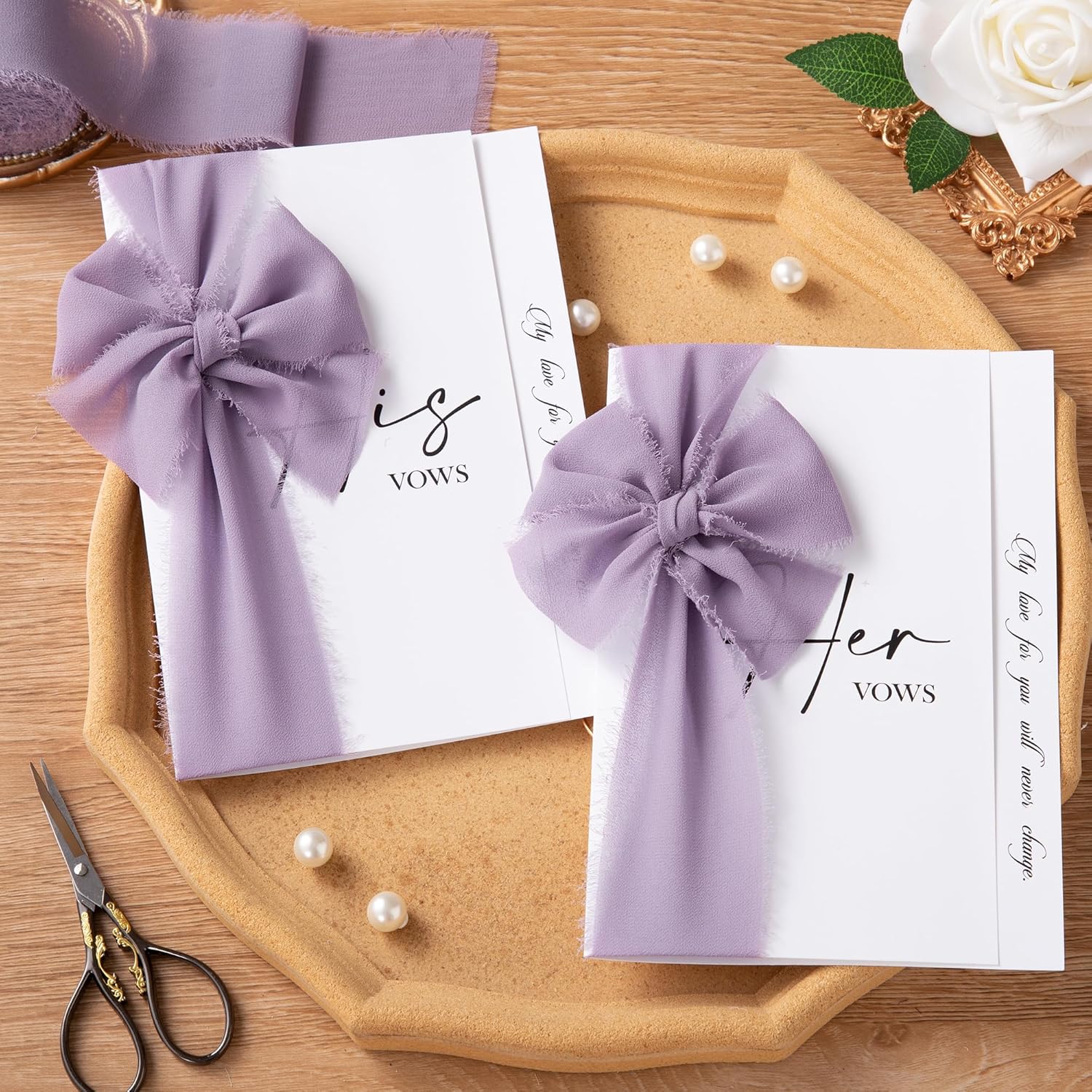 - 【Size and Color】Each roll of chiffon ribbon is 2 inches wide and 7 yards long, perfect for various creative uses such as making bows, decorating wreaths, and DIY crafts. This set includes plum, pastle purple, and ivory ribbons, one roll each. These vibrant frayed ribbons add a rustic charm to your creations, ideal for bouquet wrap or gift ribbon.